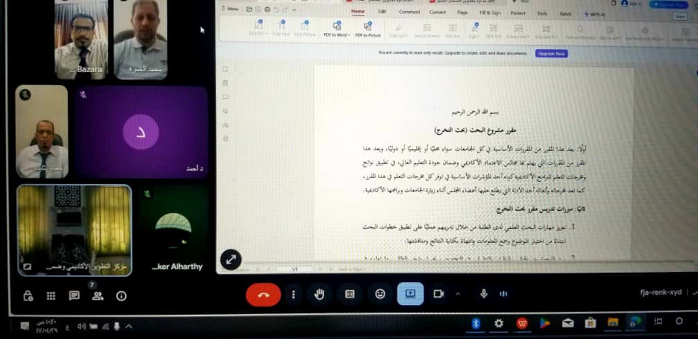 وخلال الاجتماع اطلع المجلس على سير العملية الأكاديمية في مرحلة البكالوريوس والدراسات العليا ( الماجستير والدكتوراه)، كما تم إقرار عدد من عناوين رسائل الماجستير، وعدد من قرارات تشكيل لجان المناقشة، وناقش المجلس عددا من الترقيات العلمية، وفي نهاية الاجتماع رفع المجلس توصياته لمجلس الجامعة.