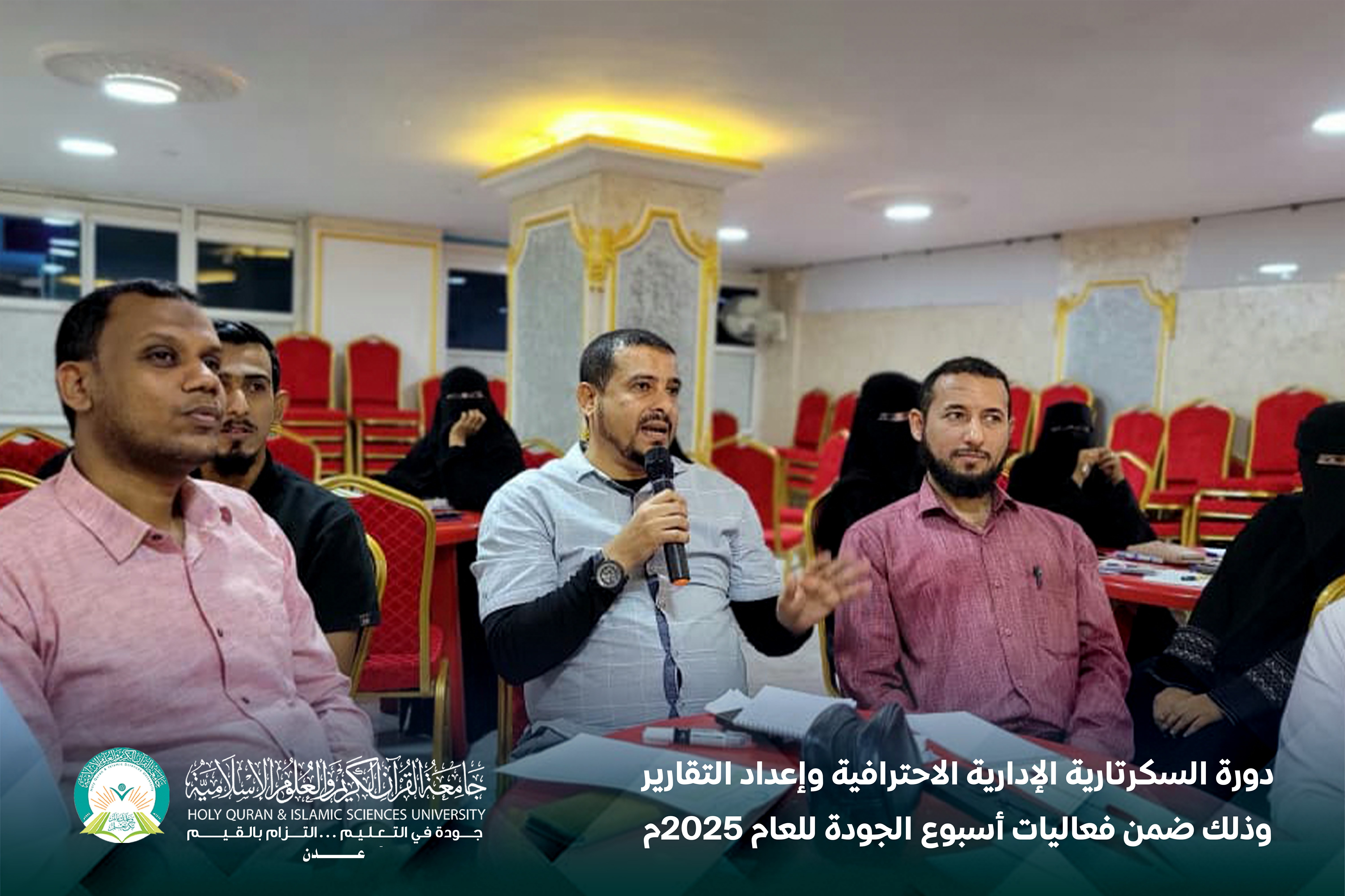 تحت شعار «الجودة التزام مؤسسي مشترك يقودنا إلى التميز»، أقام مركز التطوير الأكاديمي وضمان الجودة بجامعة القرآن الكريم والعلوم الإسلامية – عدن، دورة السكرتارية الإدارية الاحترافية وإعداد التقارير، وذلك ضمن فعاليات أسبوع الجودة للعام 2025م، خلال الفترة من 23 إلى 24 ديسمبر.