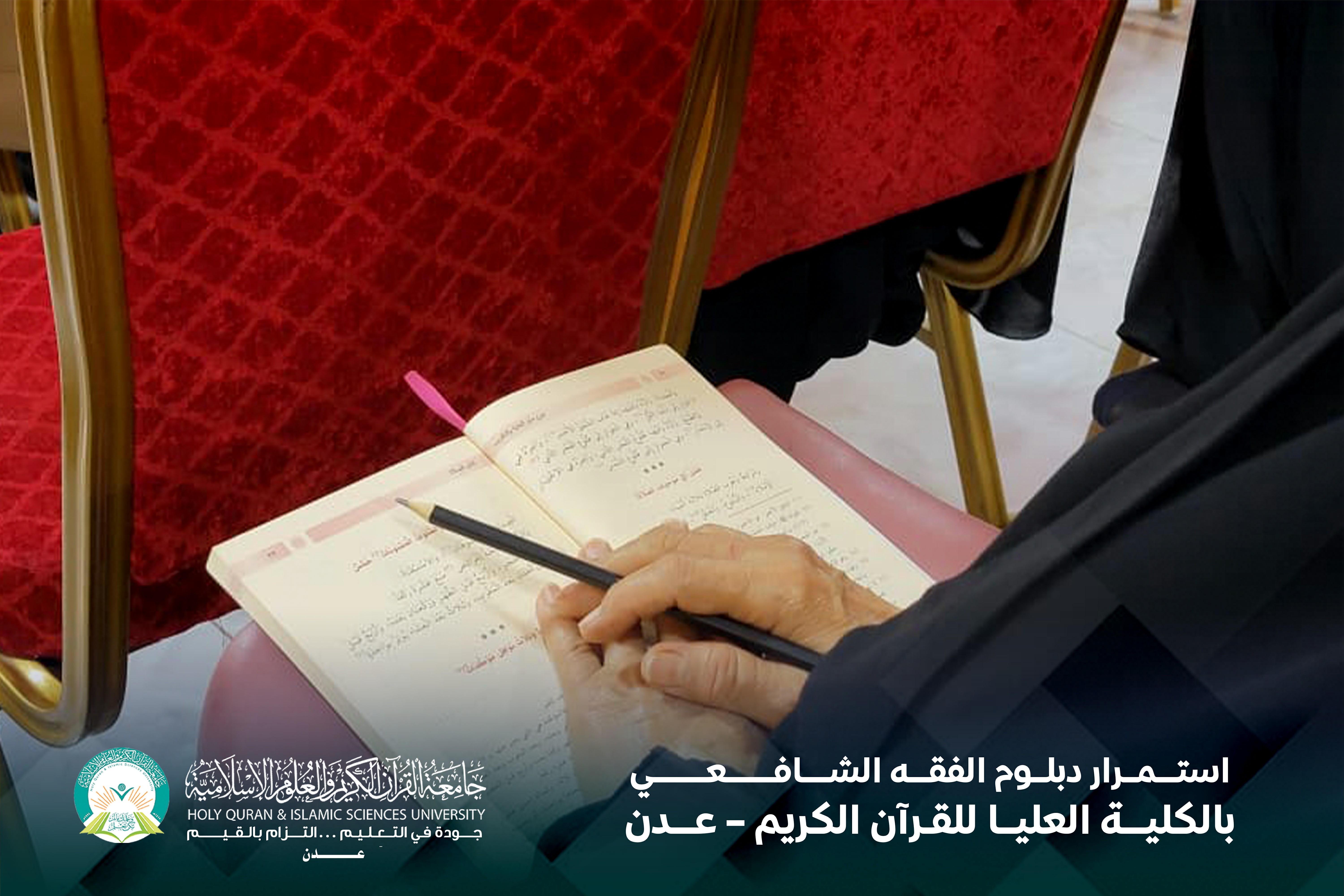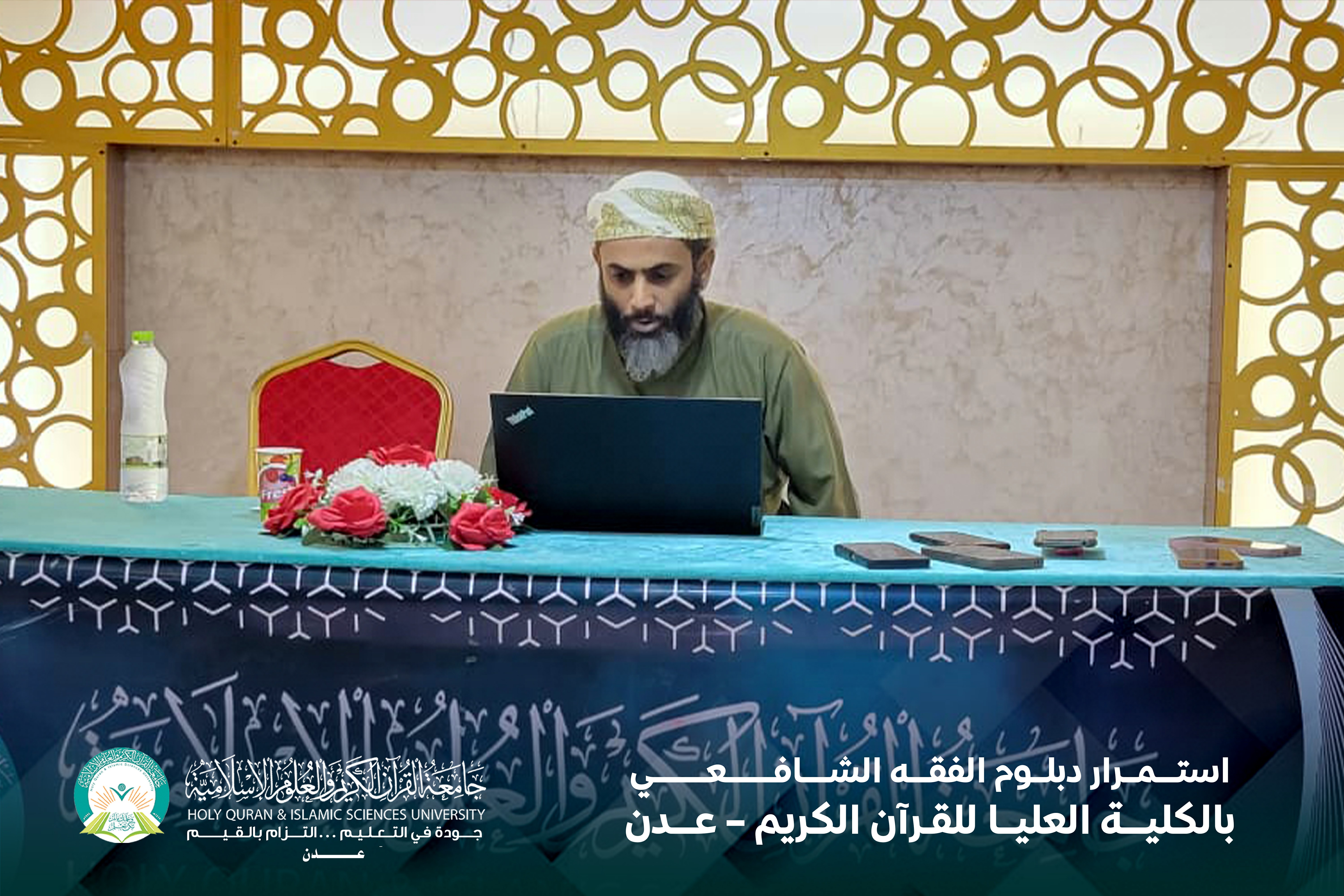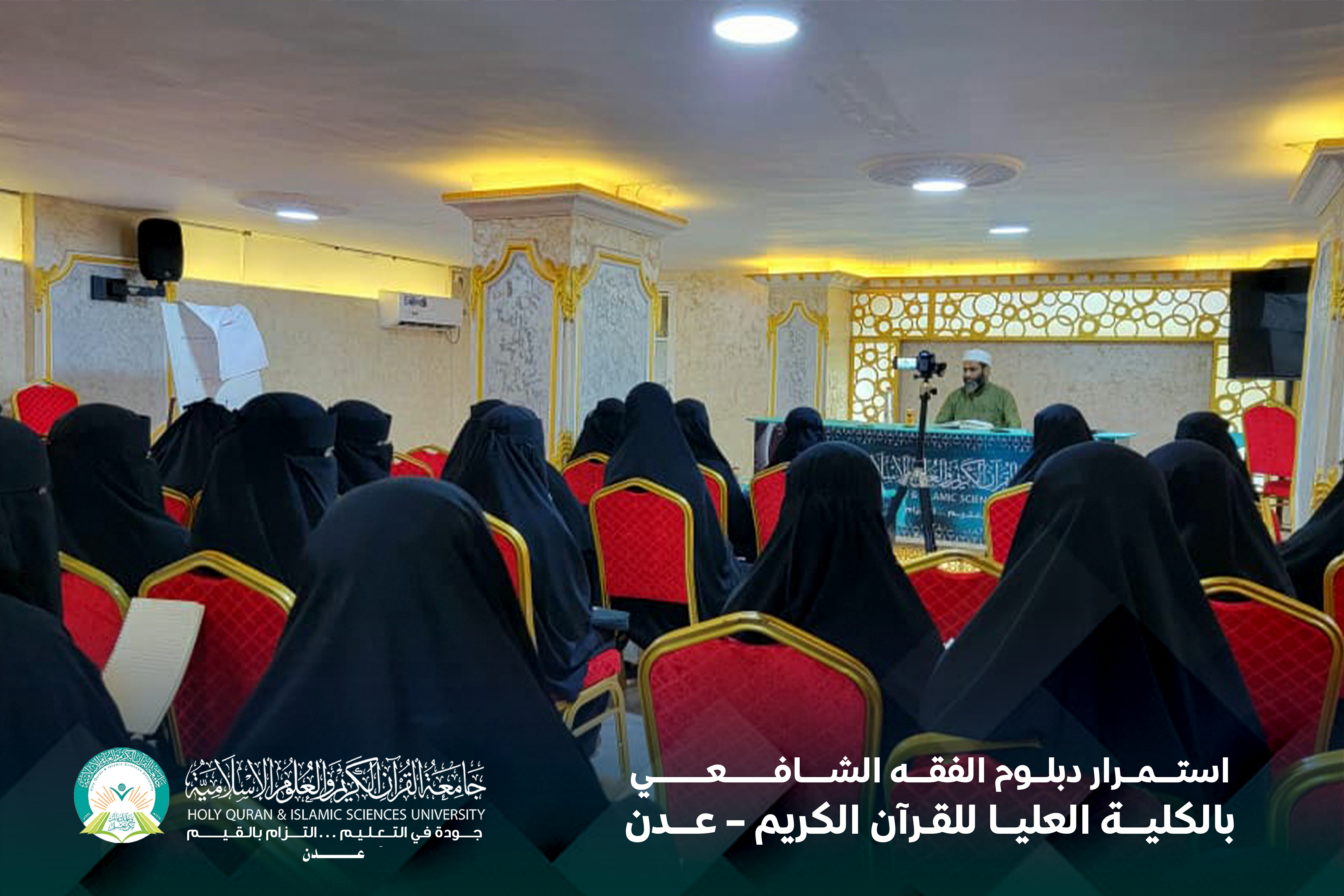 تتواصل دروس دبلوم الفقه الشافعي الذي تقيمه الكلية العليا للقرآن الكريم بجامعة القرآن الكريم والعلوم الإسلامية – عدن، ضمن برامجها العلمية الهادفة إلى تعزيز التأصيل الفقهي وتنمية الملكة العلمية لدى طلاب العلم الشرعي.