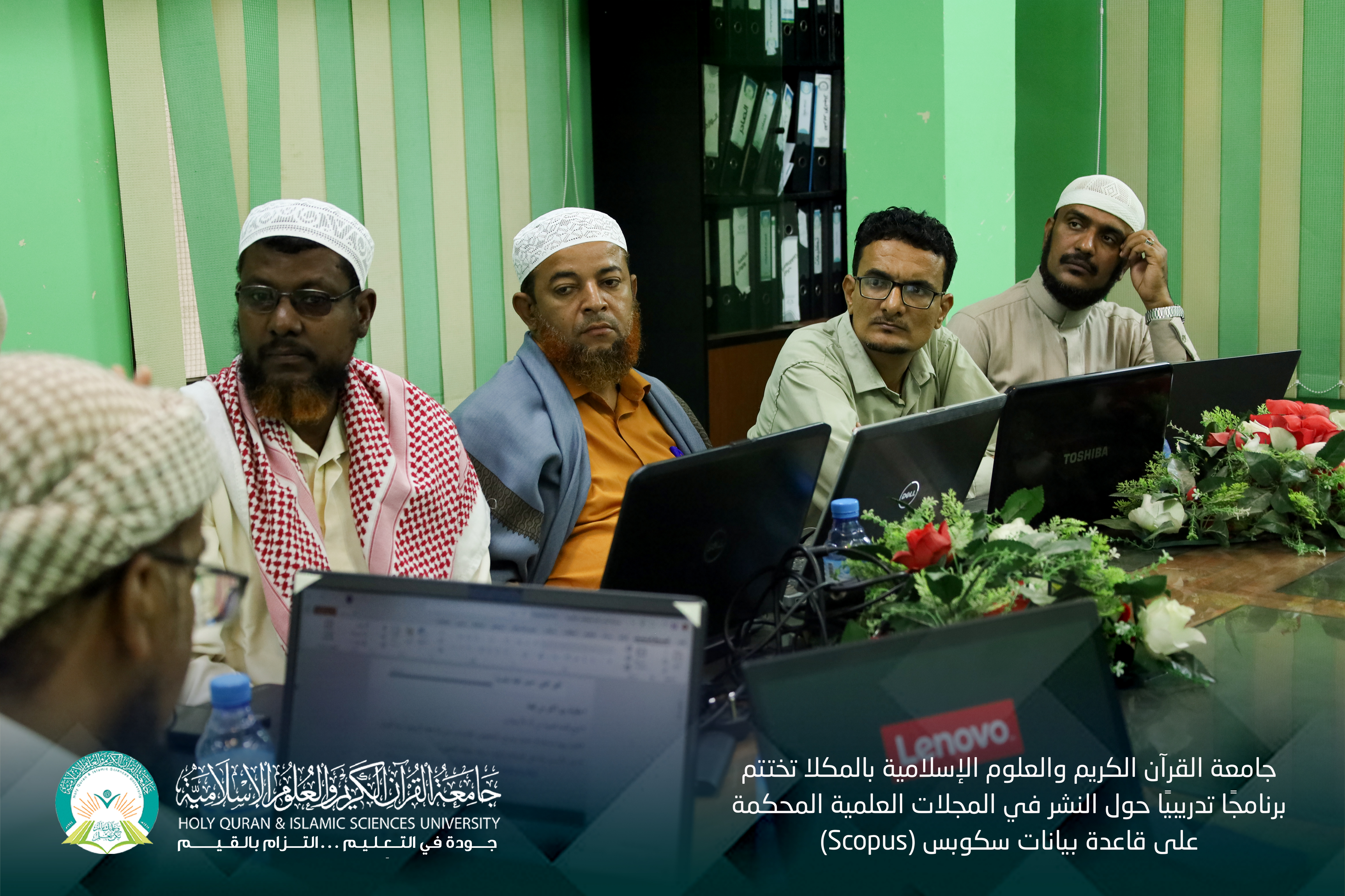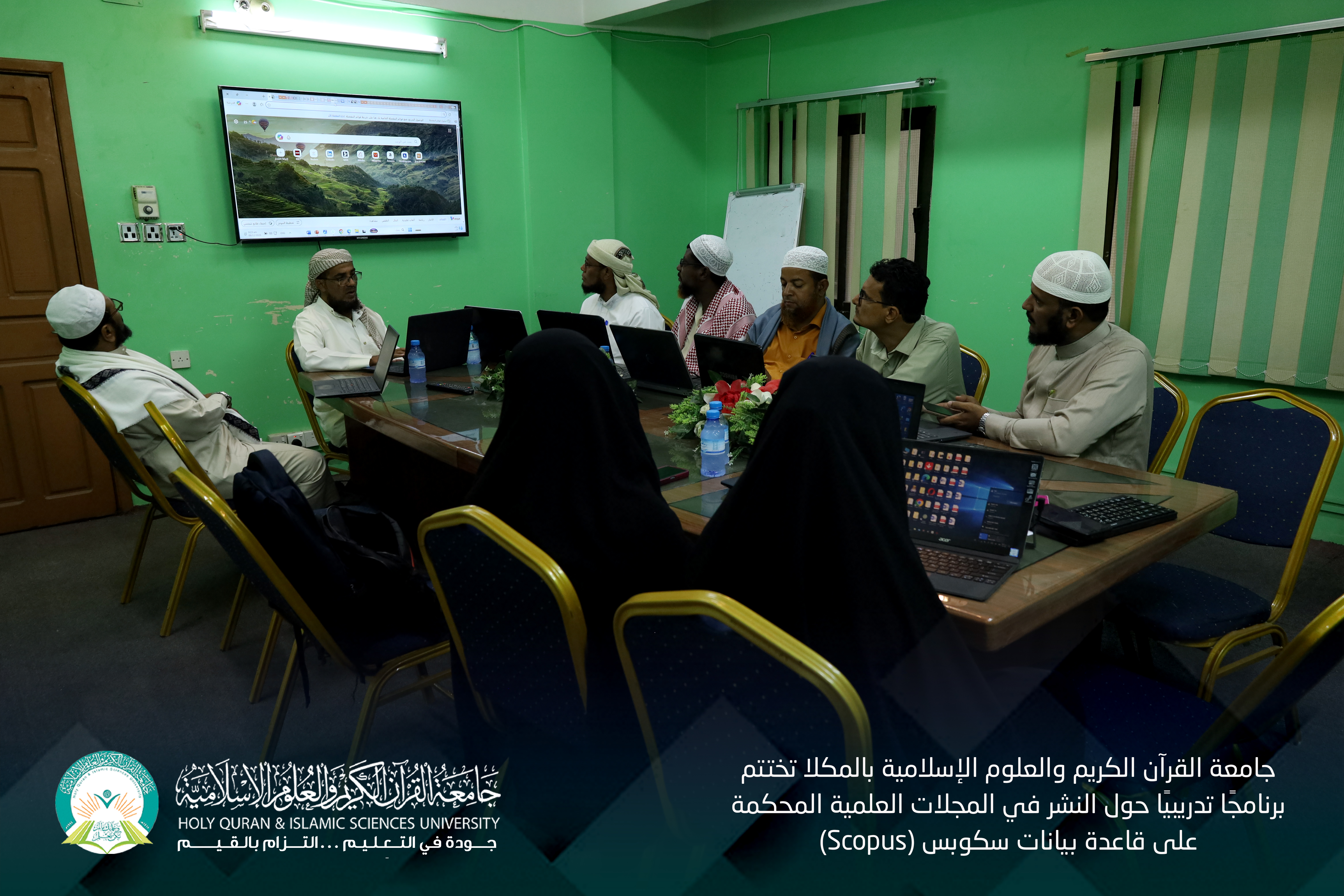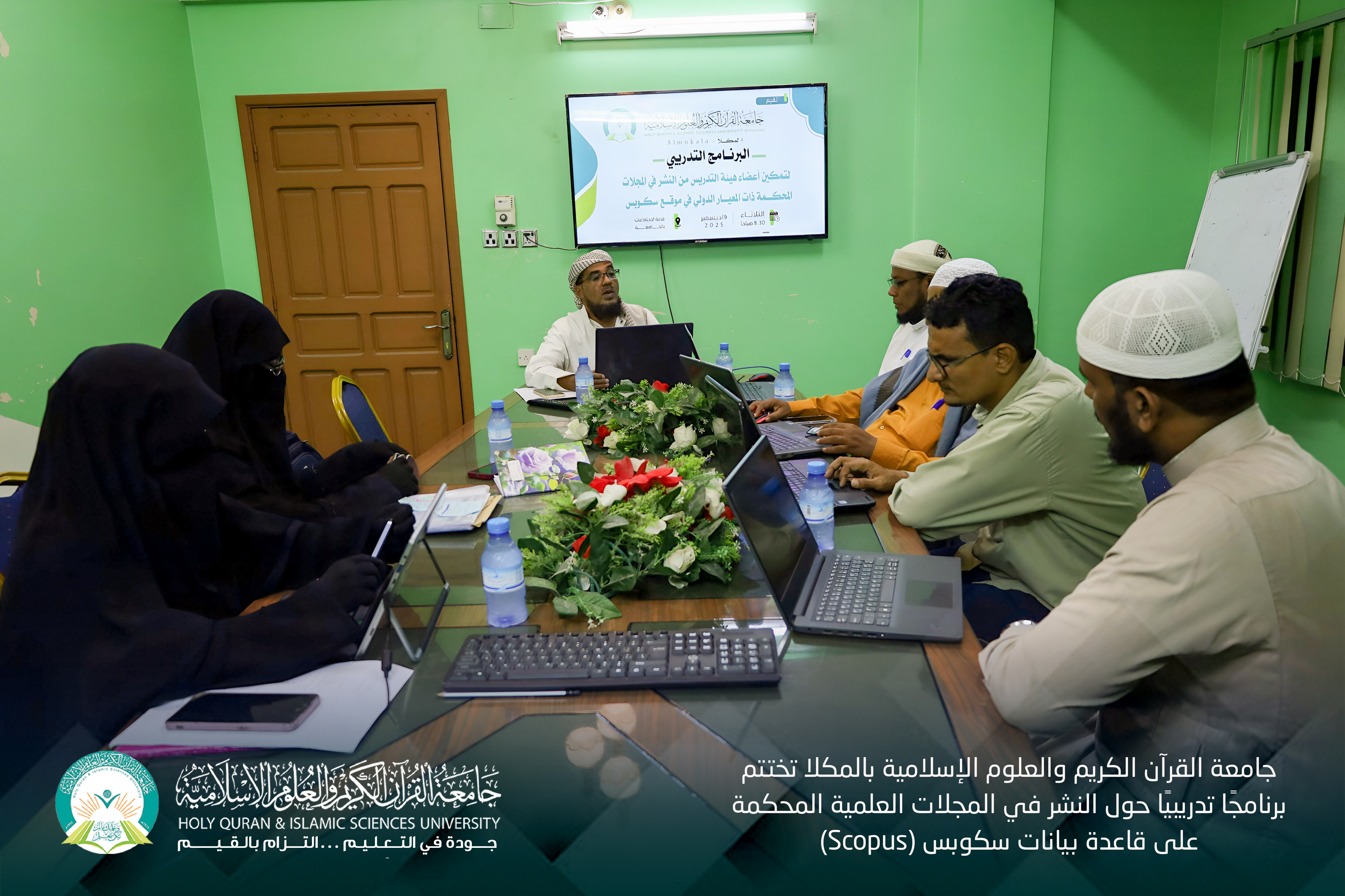 جامعة القرآن الكريم والعلوم الإسلامية بالمكلا تختتم برنامجًا تدريبيًا حول النشر في المجلات العلمية المحكمة على قاعدة بيانات سكوبس (Scopus)