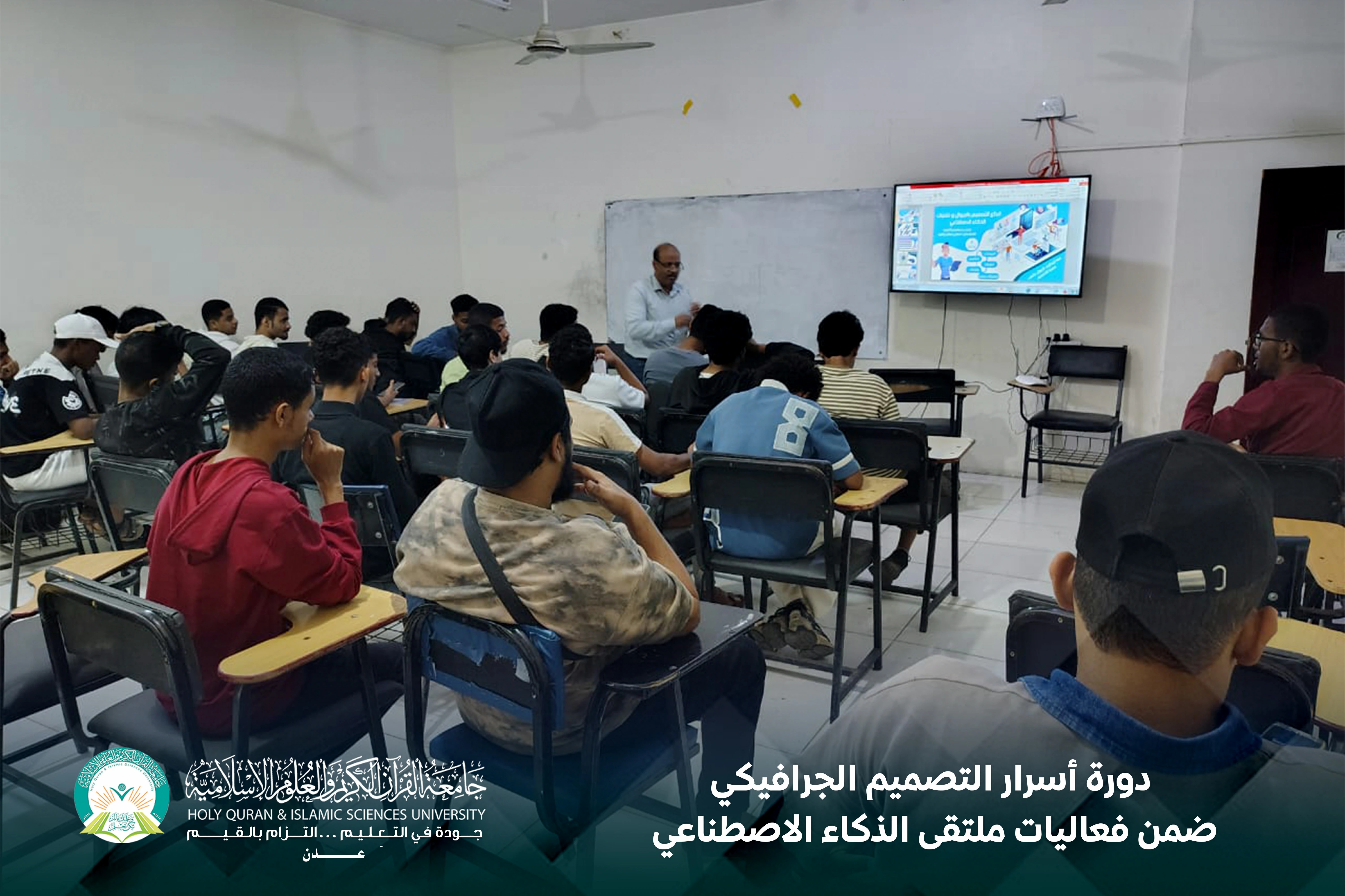 تواصل جامعة القرآن الكريم والعلوم الإسلامية، ضمن فعاليات ملتقى الذكاء الاصطناعي، تنفيذ برامجها التدريبية الهادفة إلى تنمية مهارات طلابها، حيث أقامت دورة تدريبية متخصصة بعنوان " أسرار التصميم الجرافيكي وفق نماذج الذكاء الاصطناعي "، استهدفت طلاب الجامعة من مختلف التخصصات.
