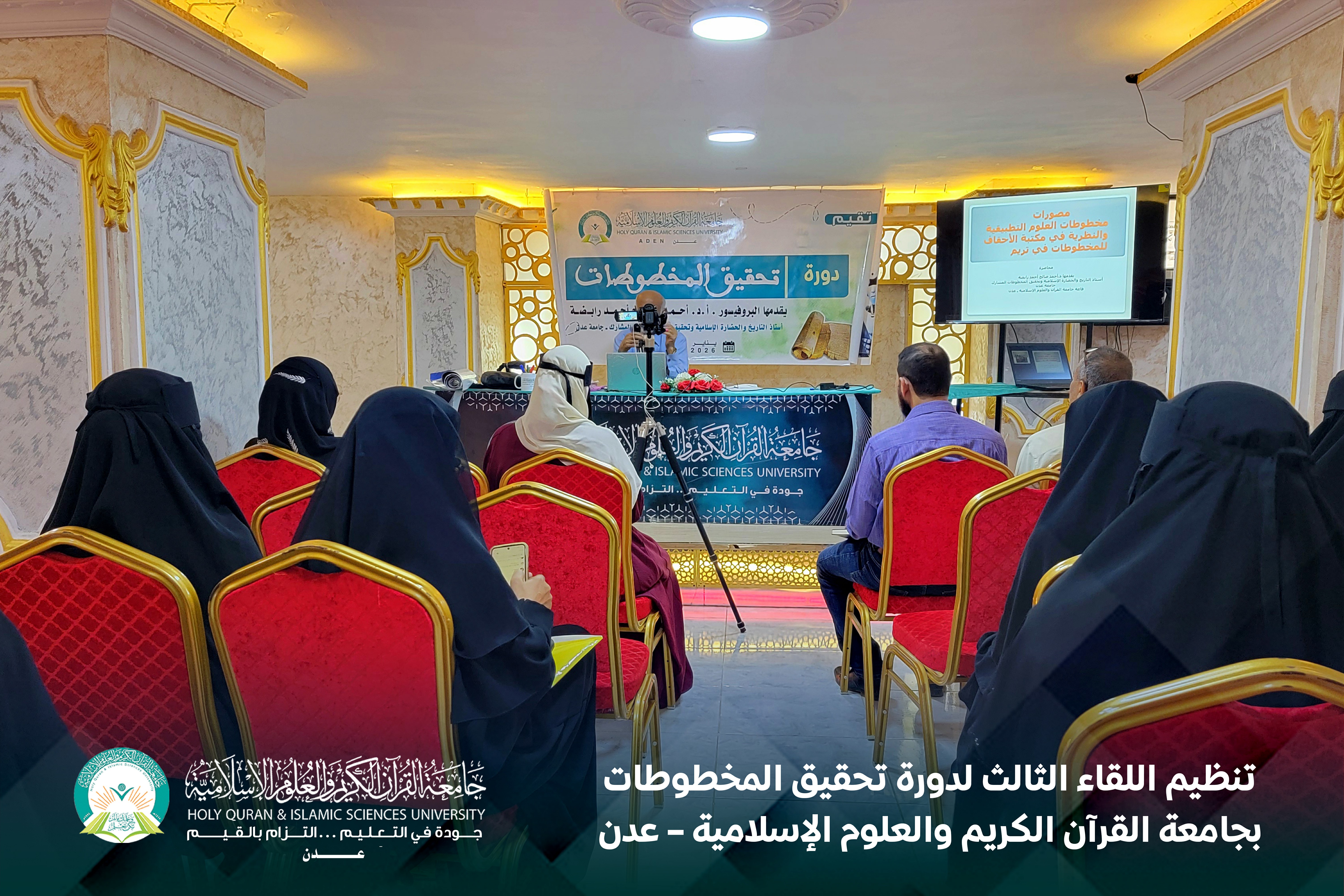 نظّمت جامعة القرآن الكريم والعلوم الإسلامية – عدن، اللقاء الثالث في دورة تحقيق المخطوطات، في إطار اهتمامها بتعزيز البحث العلمي وصقل مهارات الباحثين والطلاب في مجال تحقيق التراث الإسلامي.