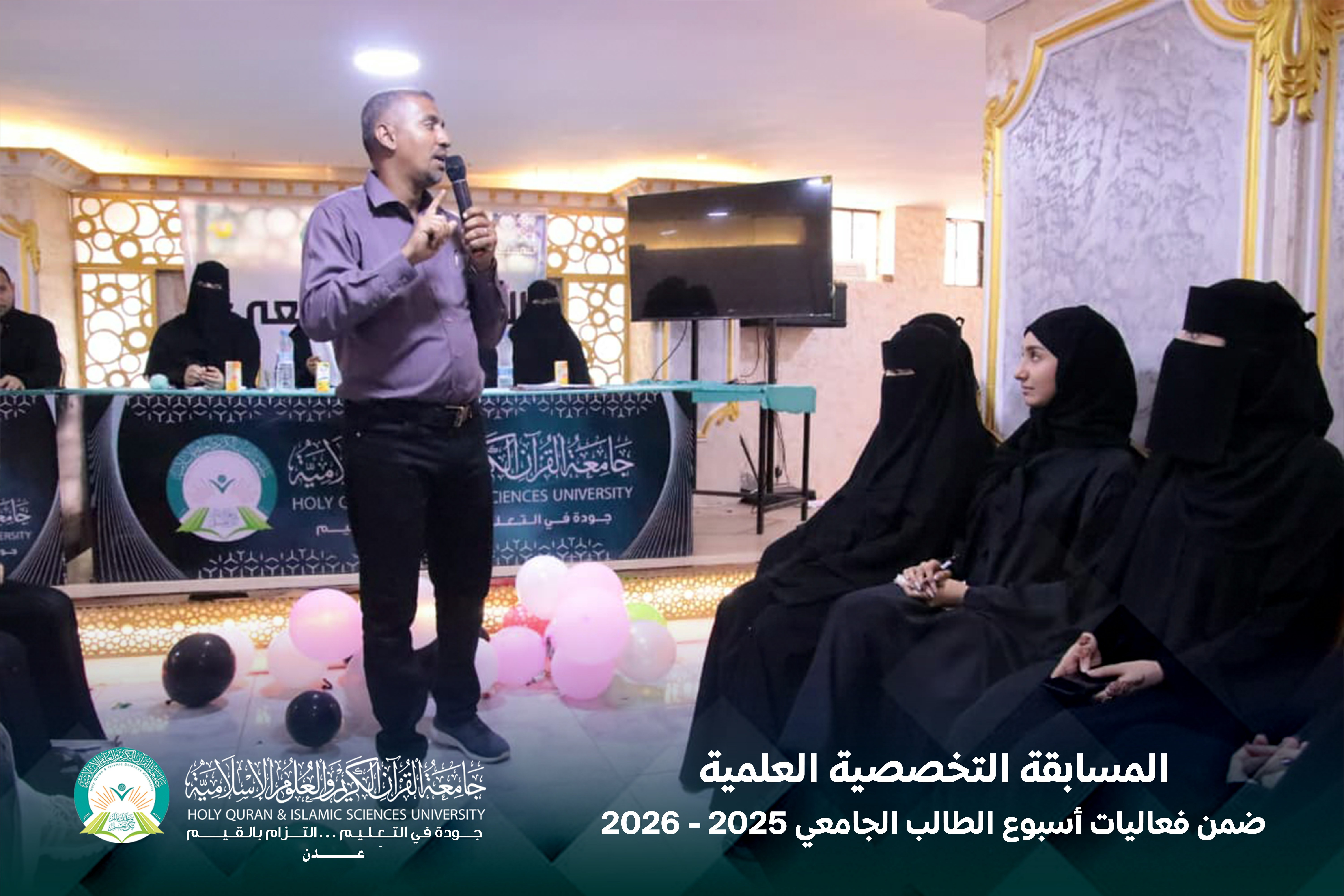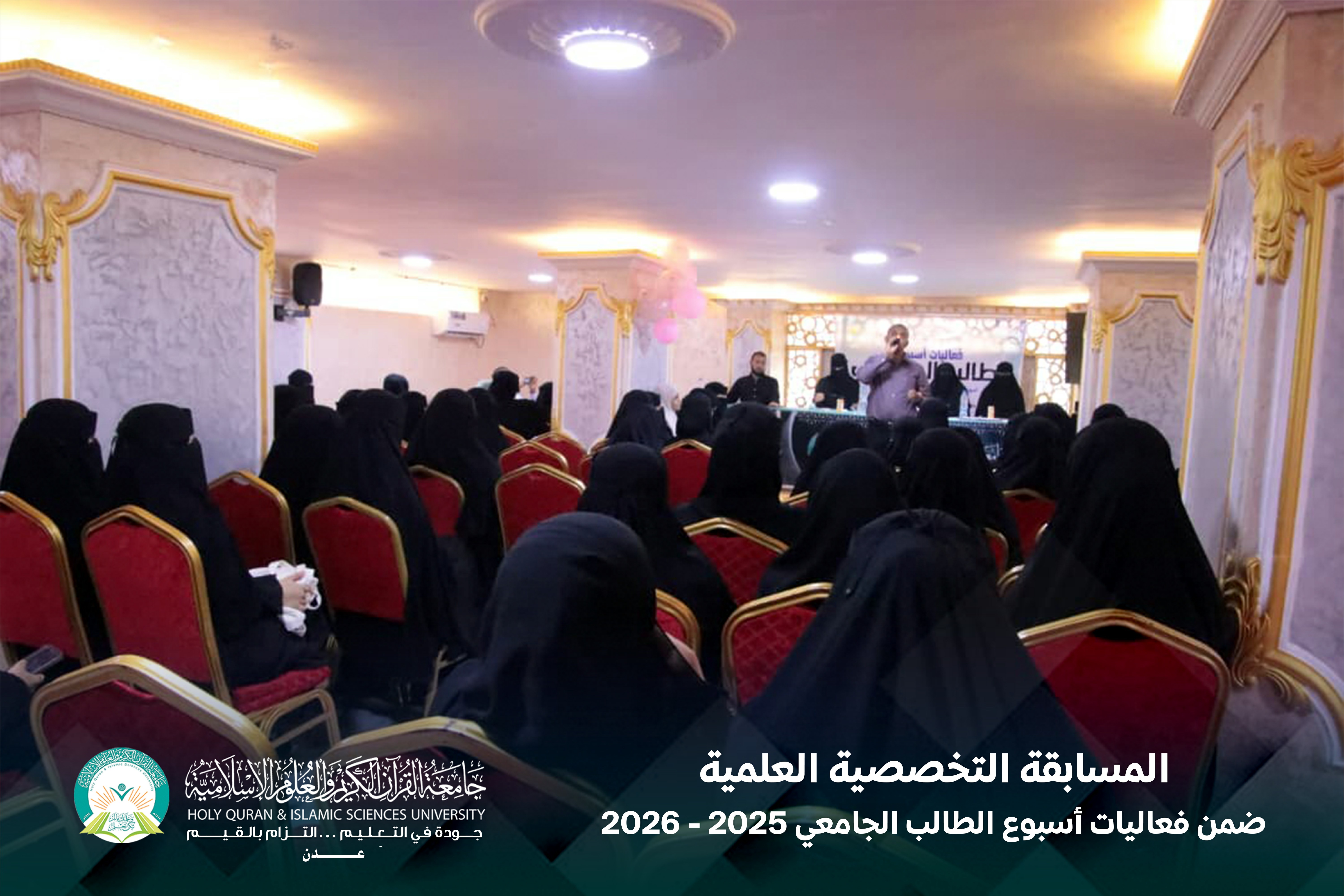 تتواصل فعاليات أسبوع الطالب الجامعي في جامعة القرآن الكريم والعلوم الإسلامية – عدن، في أجواء أكاديمية متميزة تعكس مستوى التفاعل الإيجابي والحيوية التي يتمتع بها الطلبة.