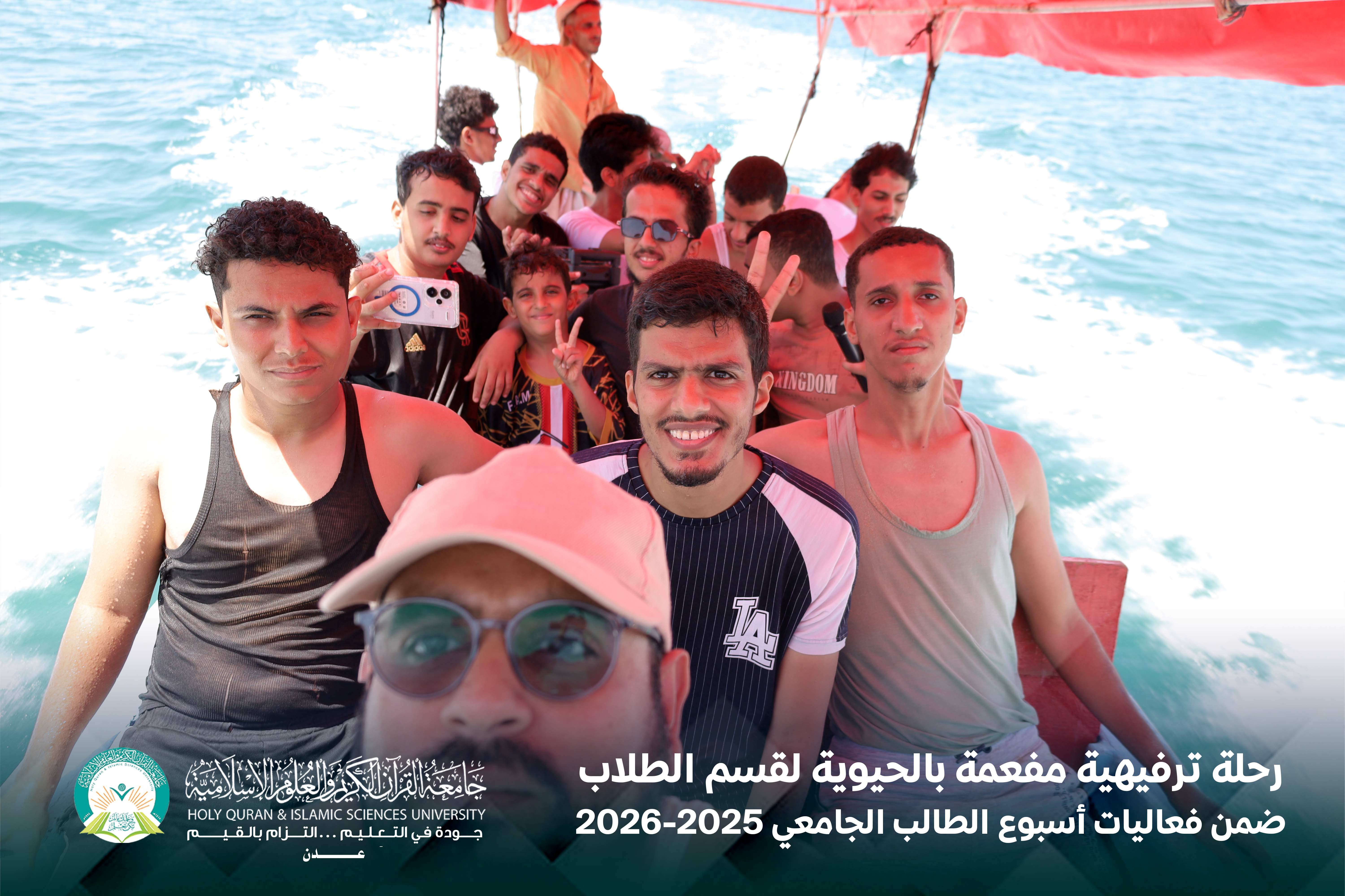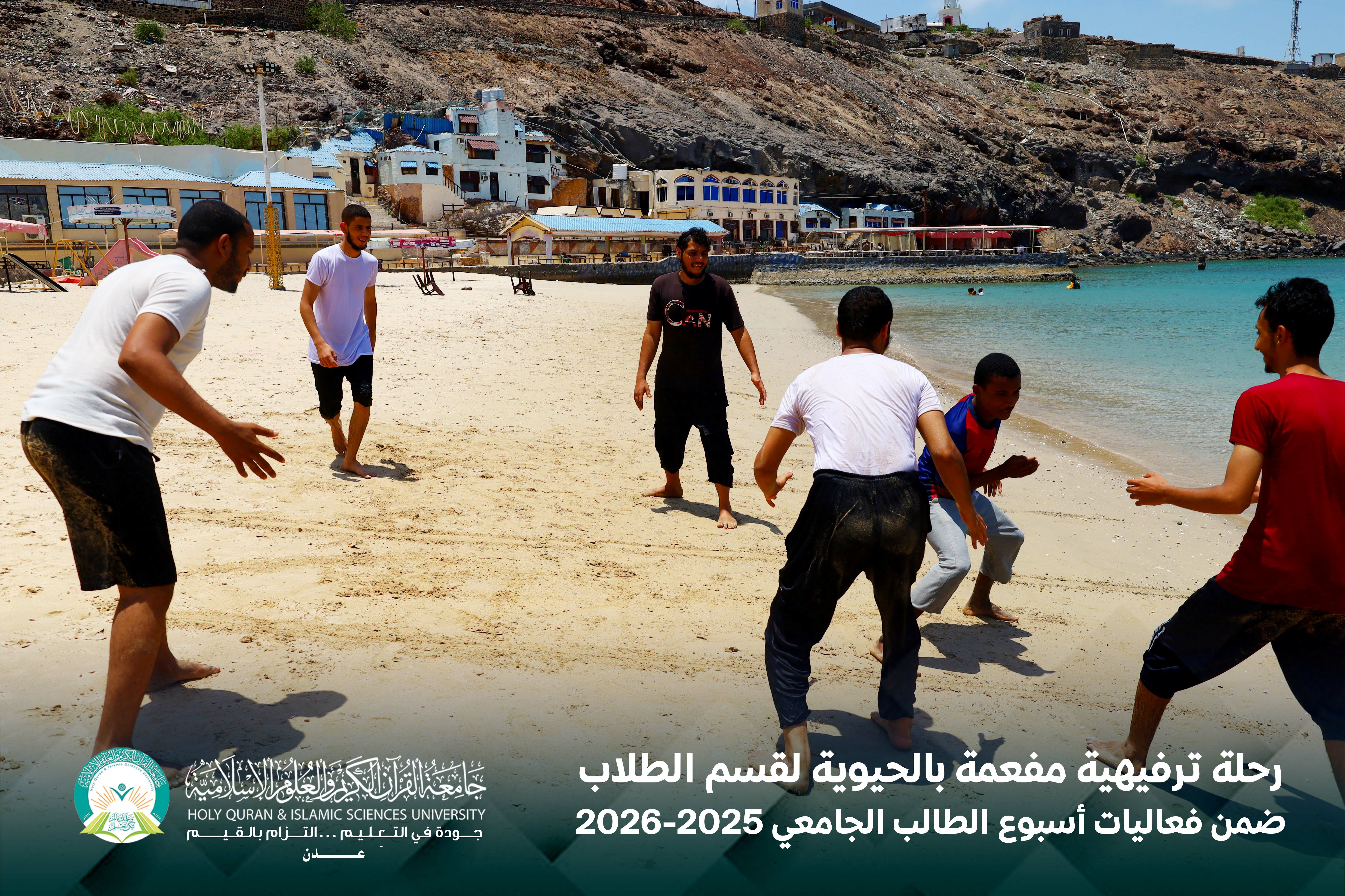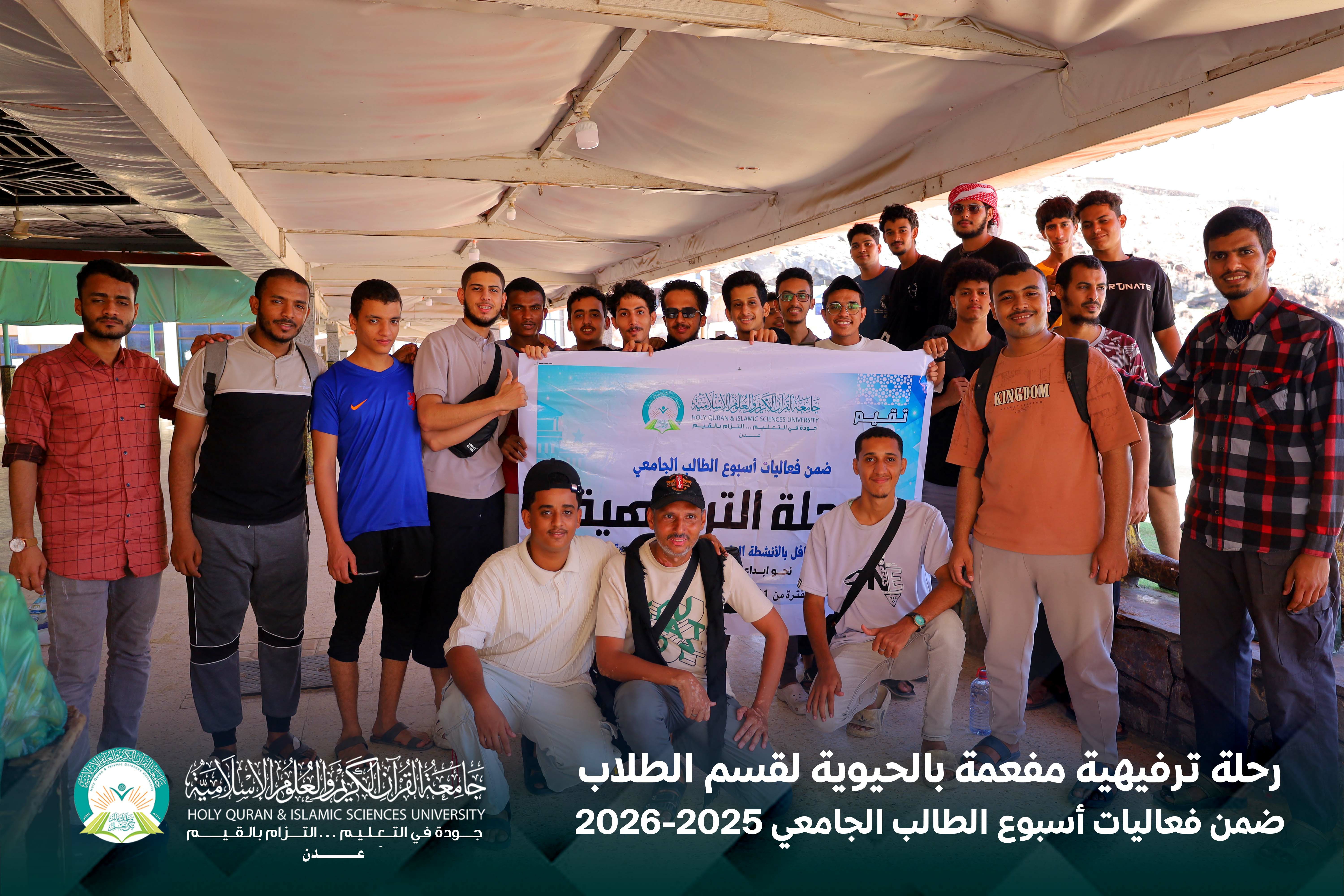 في لوحةٍ صباحيةٍ مفعمة بالحيوية، وتحت سماء يوم الخميس الموافق 16 أبريل 2026م، نظّمت جامعة القرآن الكريم والعلوم الإسلامية – عدن، بالشراكة مع المجلس الطلابي، رحلة ترفيهية لطلابها إلى منتجع الدبلوماسي، ضمن برنامج فعاليات أسبوع الطالب الجامعي.
