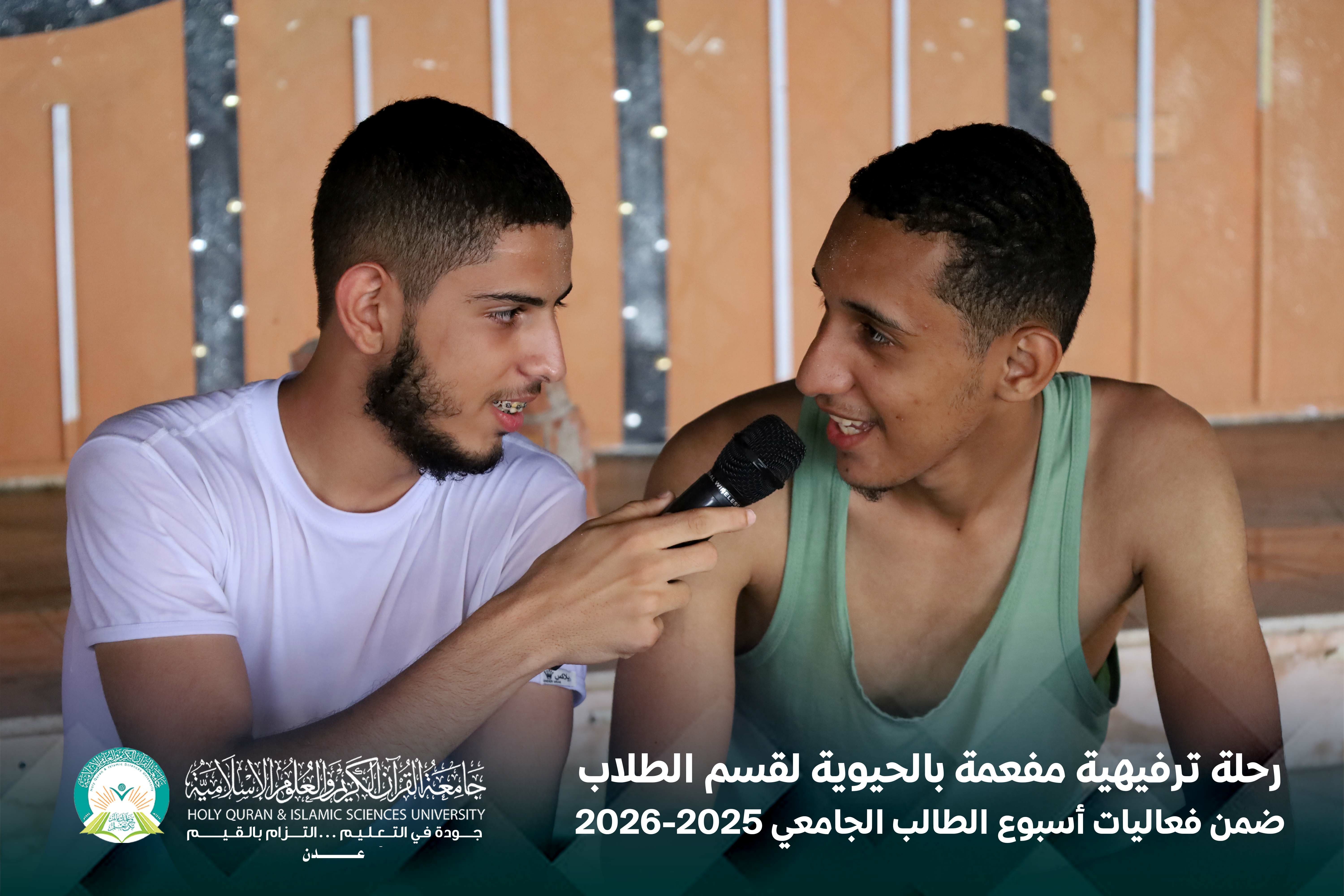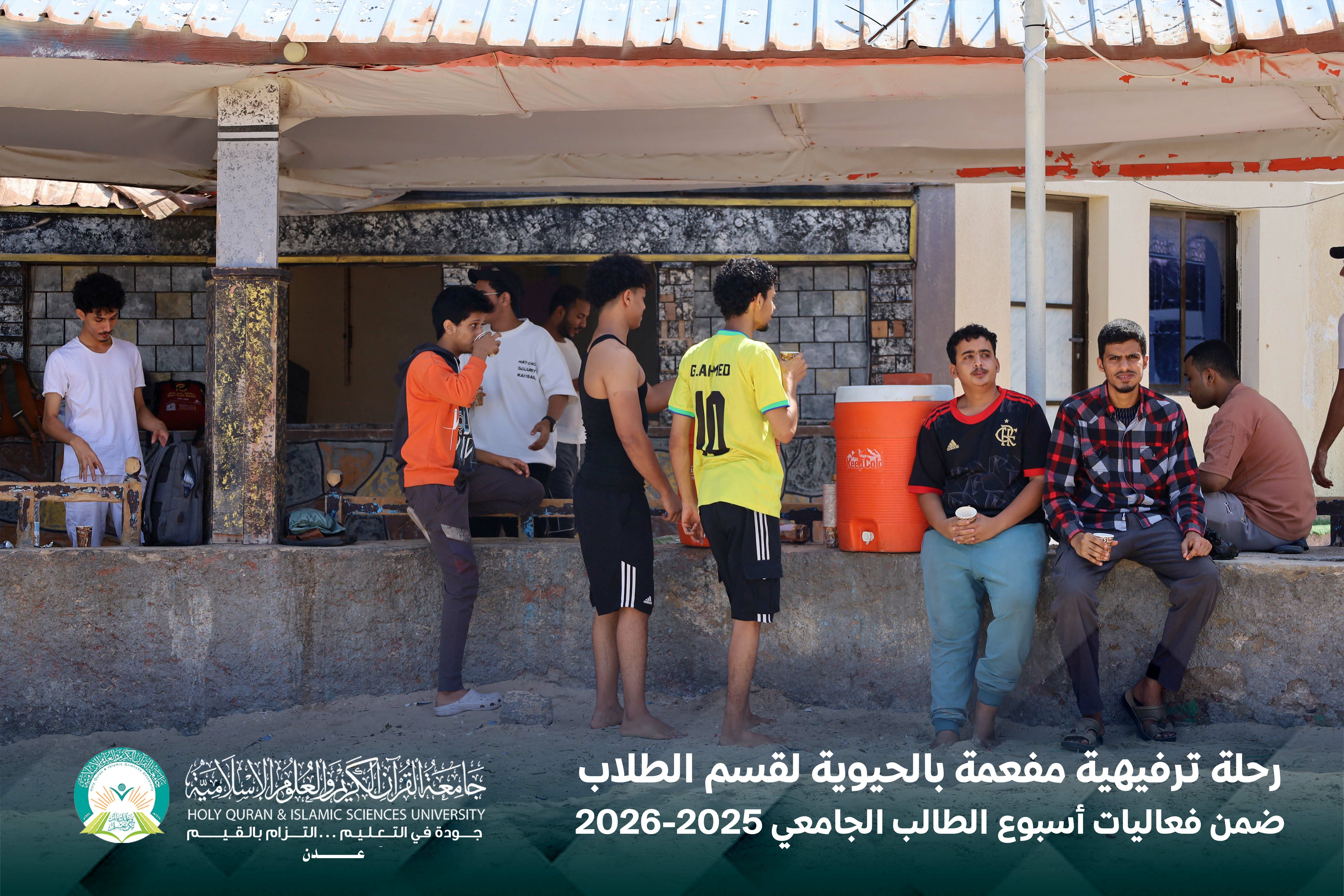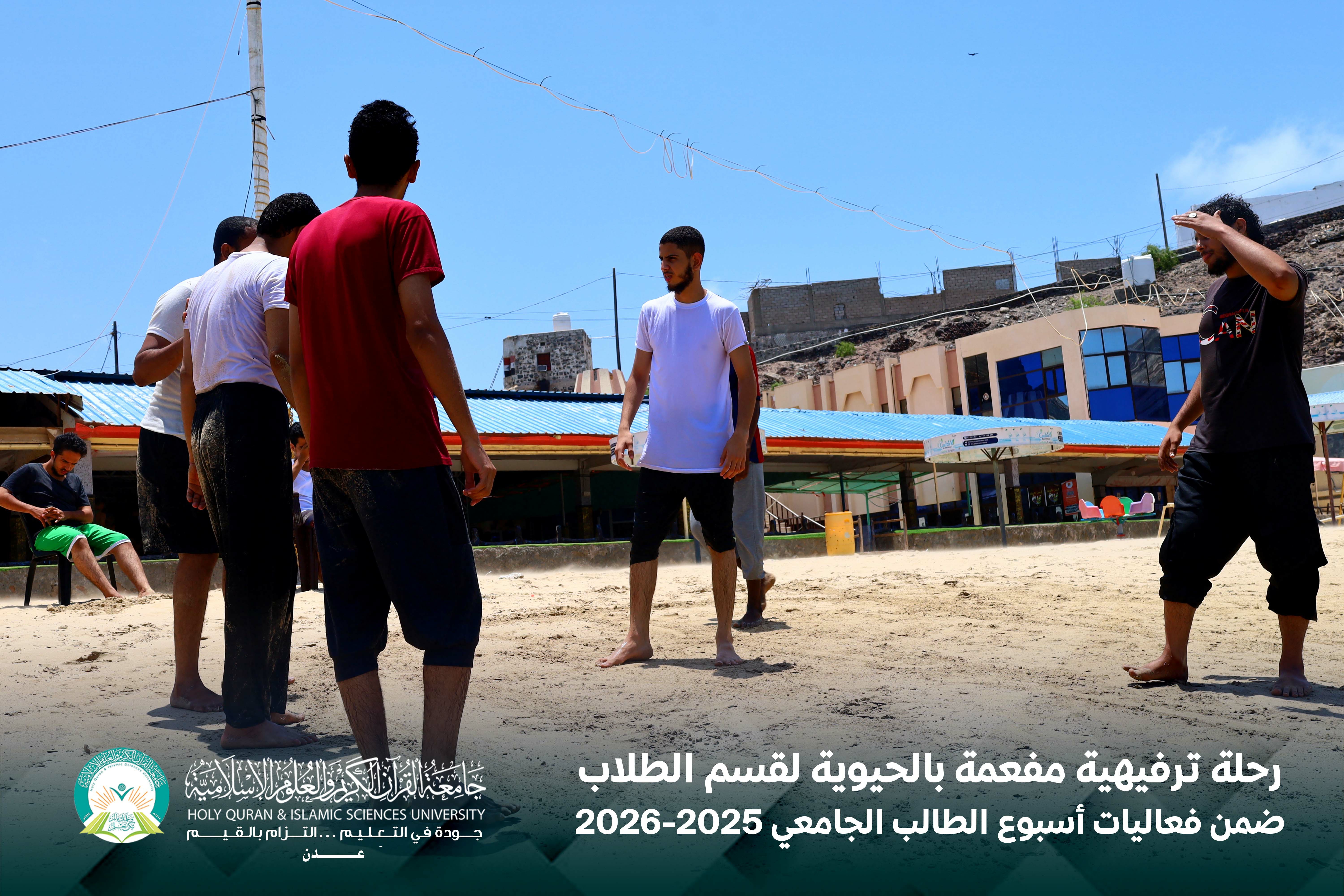 في لوحةٍ صباحيةٍ مفعمة بالحيوية، وتحت سماء يوم الخميس الموافق 16 أبريل 2026م، نظّمت جامعة القرآن الكريم والعلوم الإسلامية – عدن، بالشراكة مع المجلس الطلابي، رحلة ترفيهية لطلابها إلى منتجع الدبلوماسي، ضمن برنامج فعاليات أسبوع الطالب الجامعي.