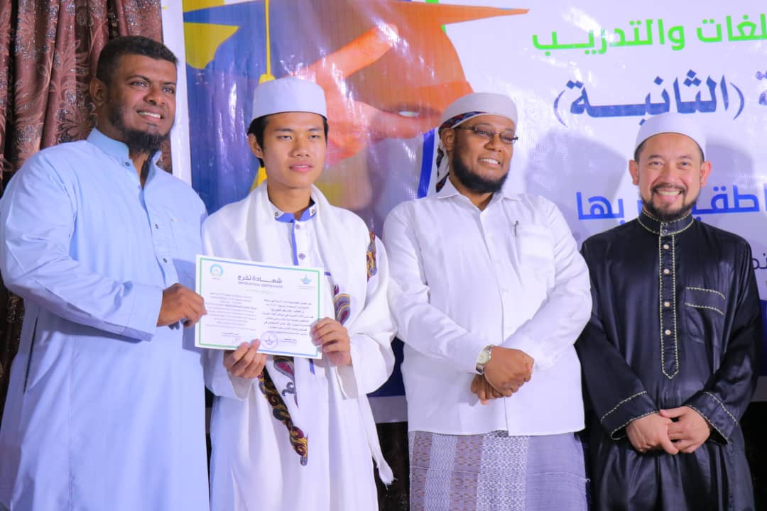 حيث حضر الحفل وفد من دولة ماليزيا بقيادة الأستاذ/ ون محمد ميزان رئيس المجمع الإسلامي بولاية ترنجانو ونائبه د. وليد السلطان، وقد أشاد الدكتور/ أحمد سالمين بن منصور مدير برنامج اللغة العربية للناطقين بغيرها في كلمته بنجاح الأكاديمية من خلال منهج برنامج اللغة العربية الذي يحتوي على مهارات التحدث والإستماع وتعلم النحو والصرف والتي دامت عامًا دراسيًا كاملًا.