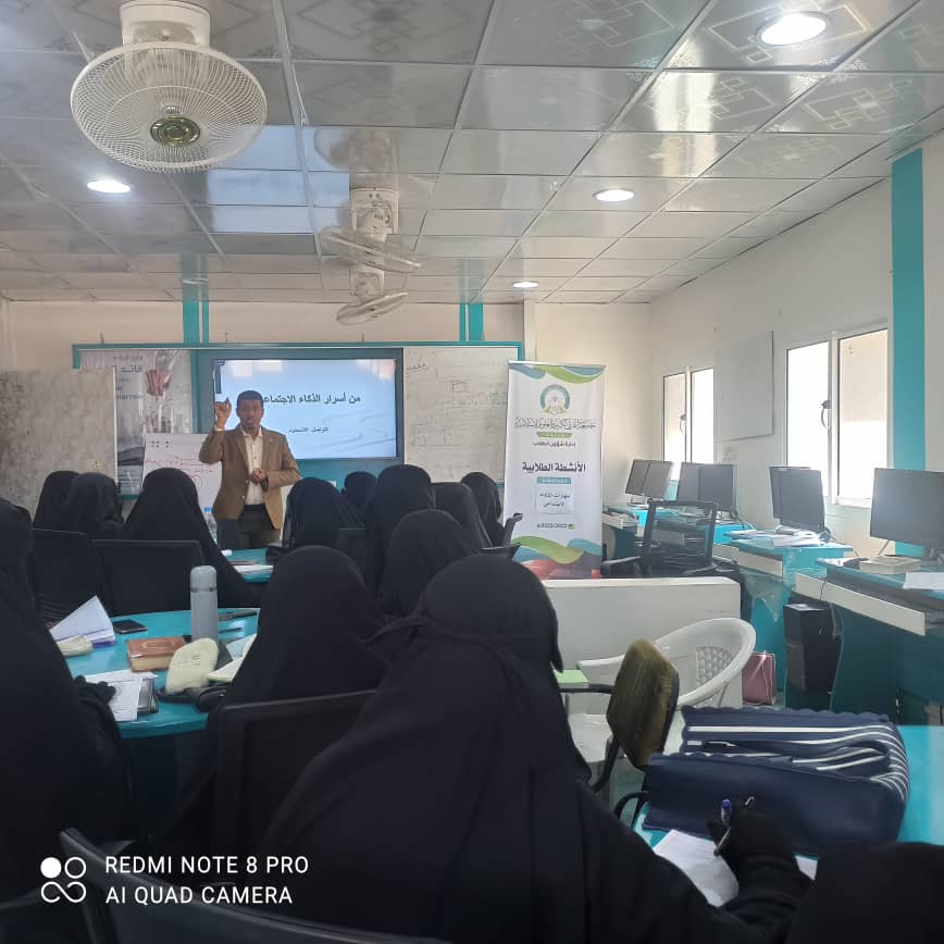 ضمن سلسلة الدورات المتعلقة ببرنامج دبلوم الأداء الوظيفي أقام قسم الطالبات بجامعة القرآن الكريم والعلوم الاسلامية – المكلا دورة تدريبية بعنوان مهارات الذكاء الاجتماعي سر التفوق والنجومية يوم الثلاثاء الموافق ٣١ يناير 2023م .