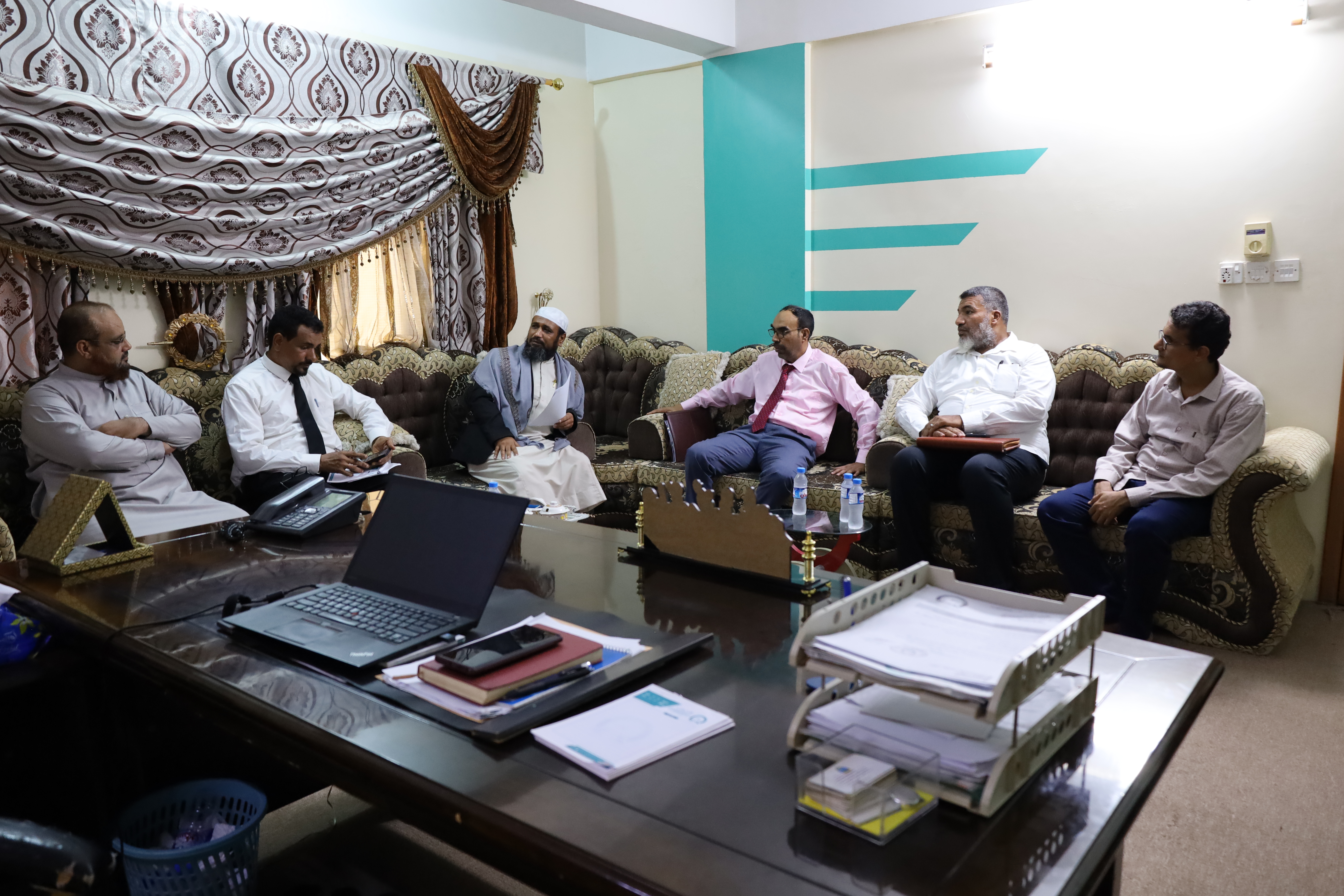 كان في استقبال اللجنة الدكتور عمر محفوظ باجبير، مدير الجامعة بالمكلا، والدكتور عمر سعيد بازرعة، نائب المدير للشؤون الأكاديمية والدراسات العليا، والدكتور حسين بازرعة، مسئول الجودة، والأستاذ عمر الحداد، نائب المدير للشئون الإدارية والمالية والأستاذ عمربارجاش مدير شؤون الطلاب.