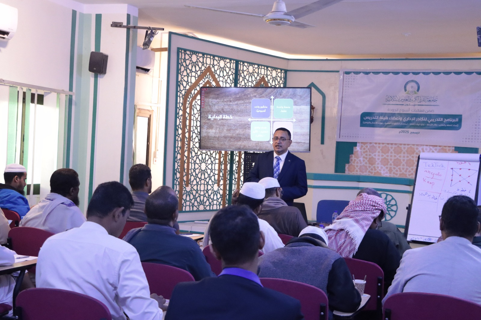 نظّمت جامعة القرآن الكريم والعلوم الإسلامية بسيئون برنامجًا تدريبيًا مكثف للكادر الإداري وأعضاء هيئة التدريس، وذلك ضمن فعاليات أسبوع الجودة، الذي أُقيم تحت شعار: «الجودة التزام مؤسسي مشترك يقودنا إلى التميز».