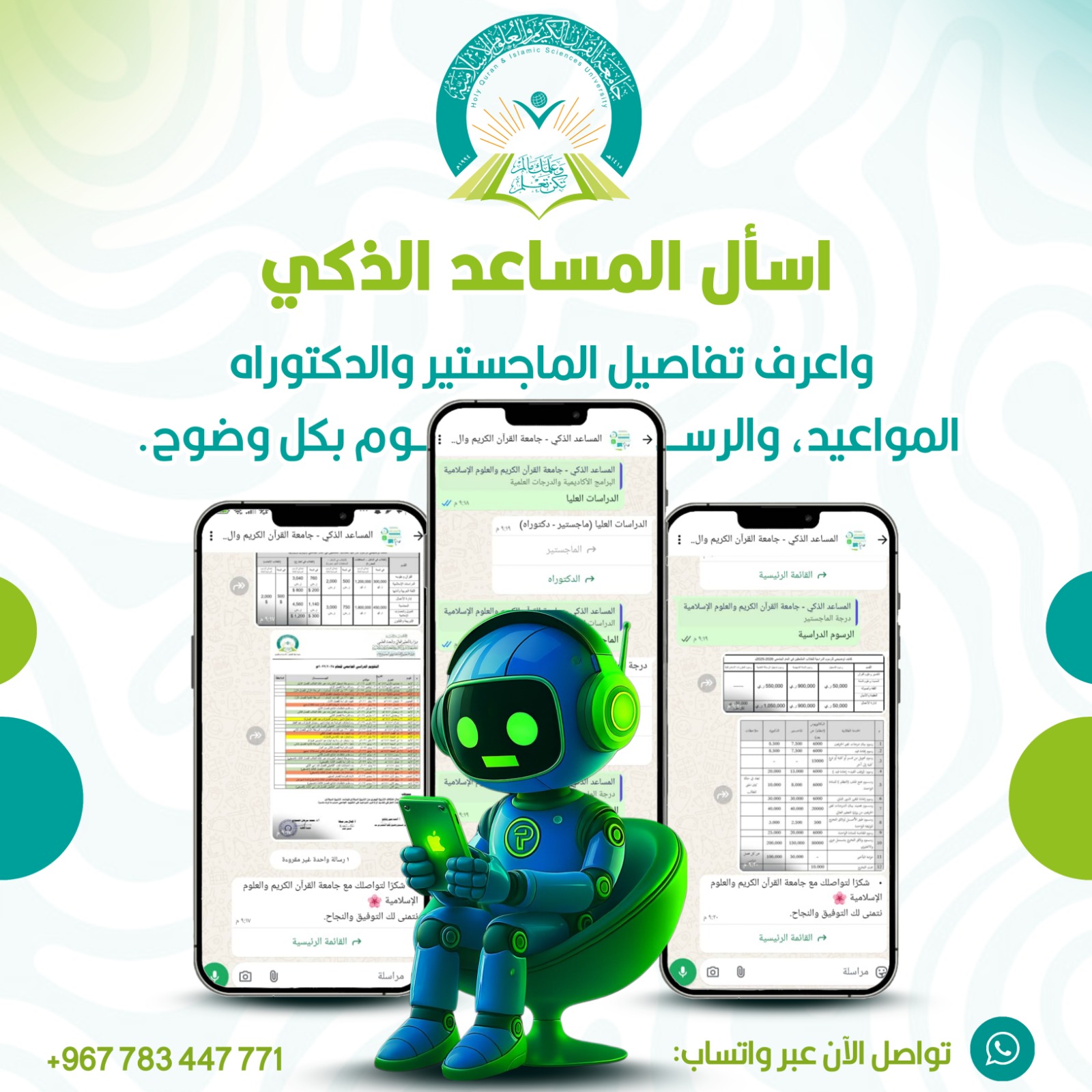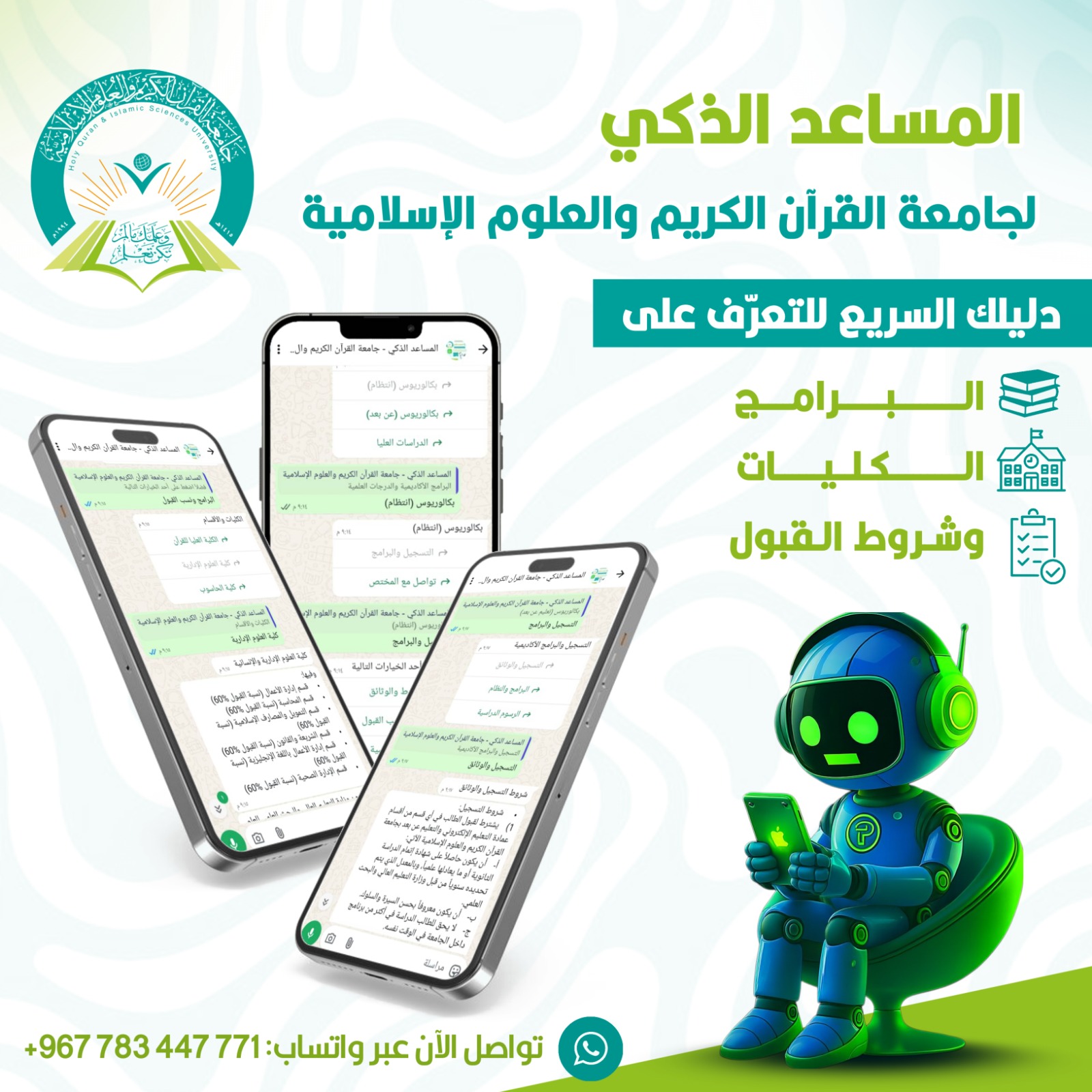 دشّنت إدارة الأنظمة الرقمية بجامعة القرآن الكريم والعلوم الإسلامية مشروع المساعد الذكي، وهو خدمة رقمية تعمل عبر تطبيق واتس آب، تهدف إلى تقديم إجابات مباشرة وتلقائية حول البرامج الأكاديمية والخدمات التعليمية، بما يسهم في تسهيل وصول الطلبة والمهتمين إلى المعلومات بدقة وسرعة.