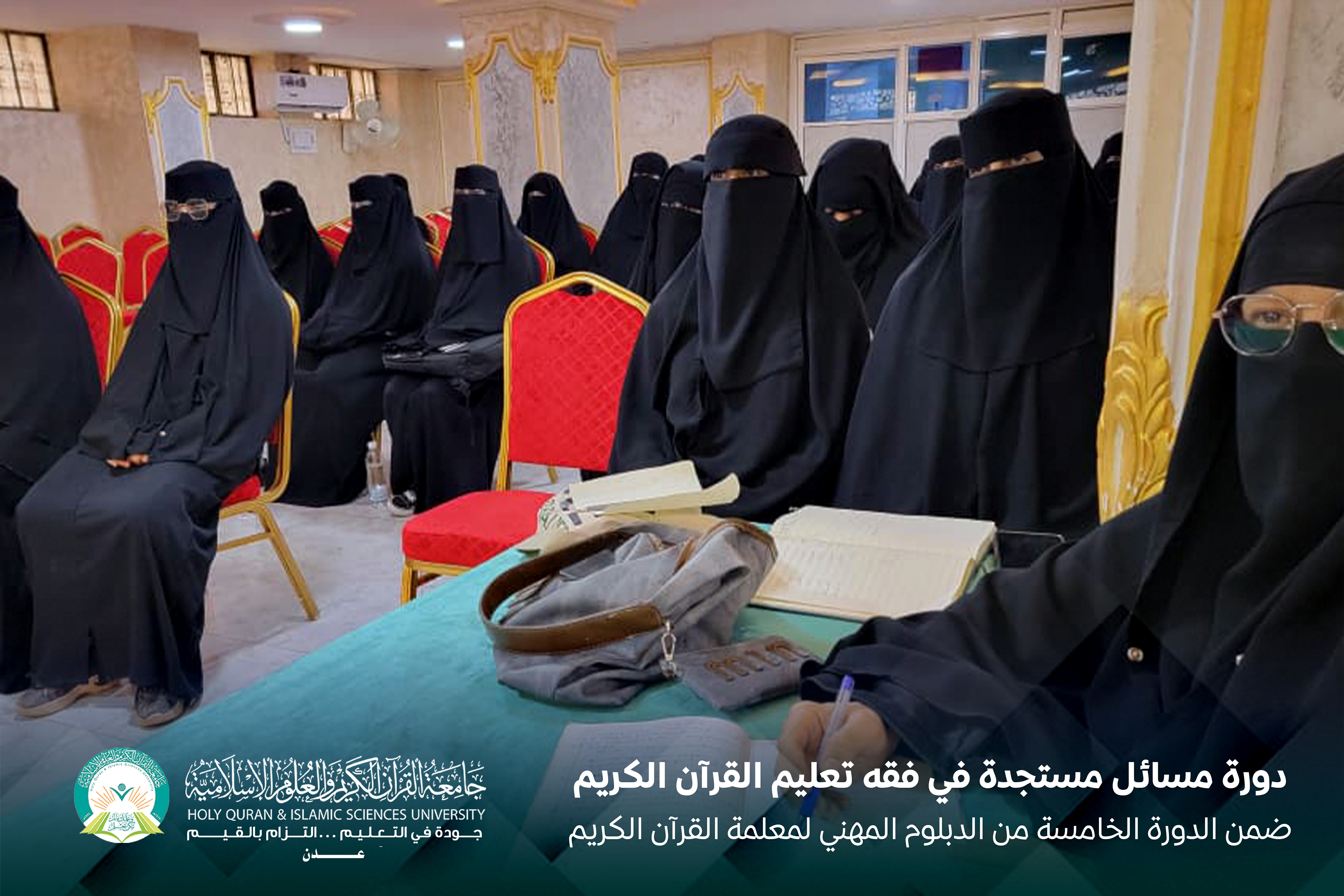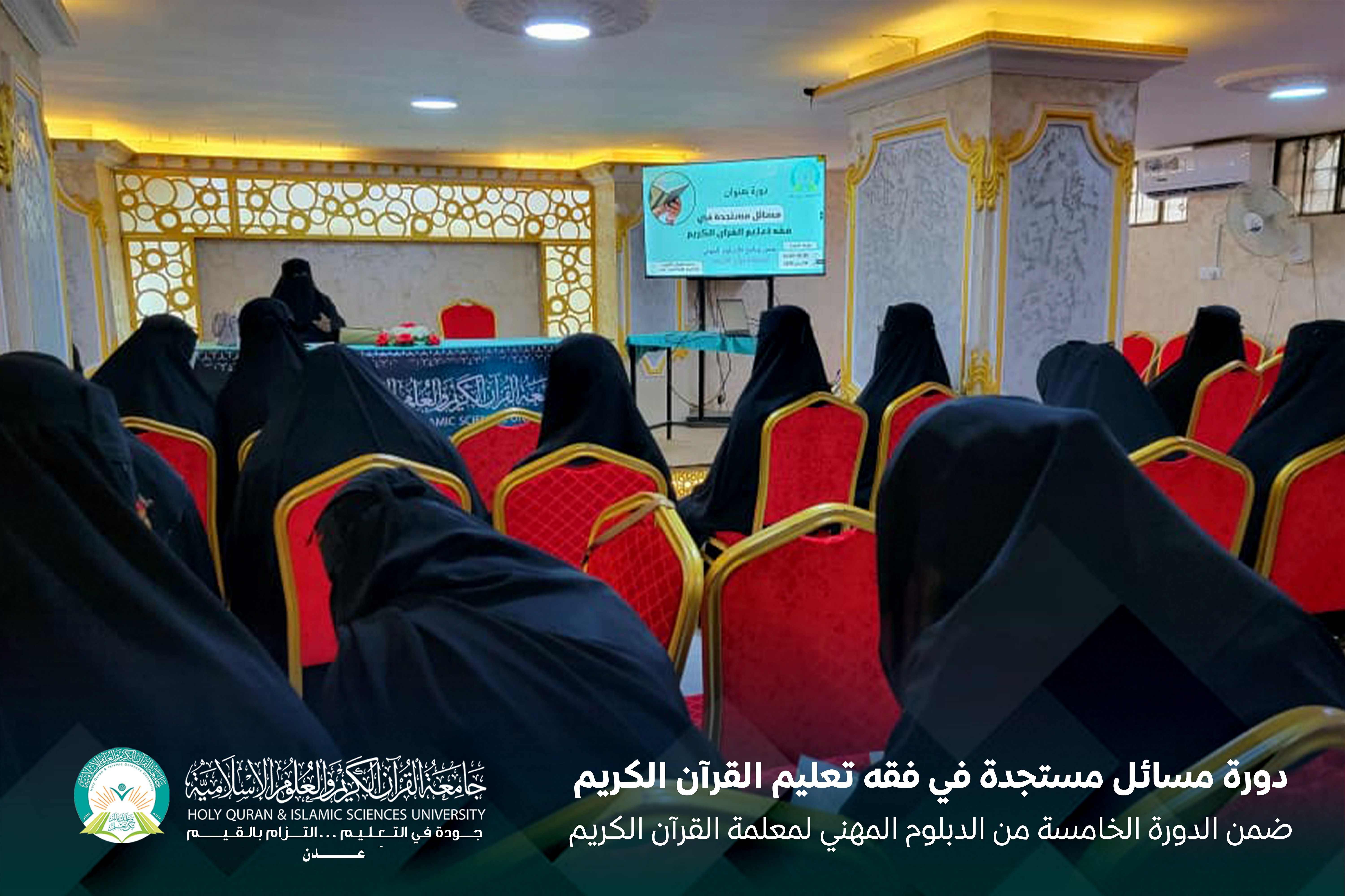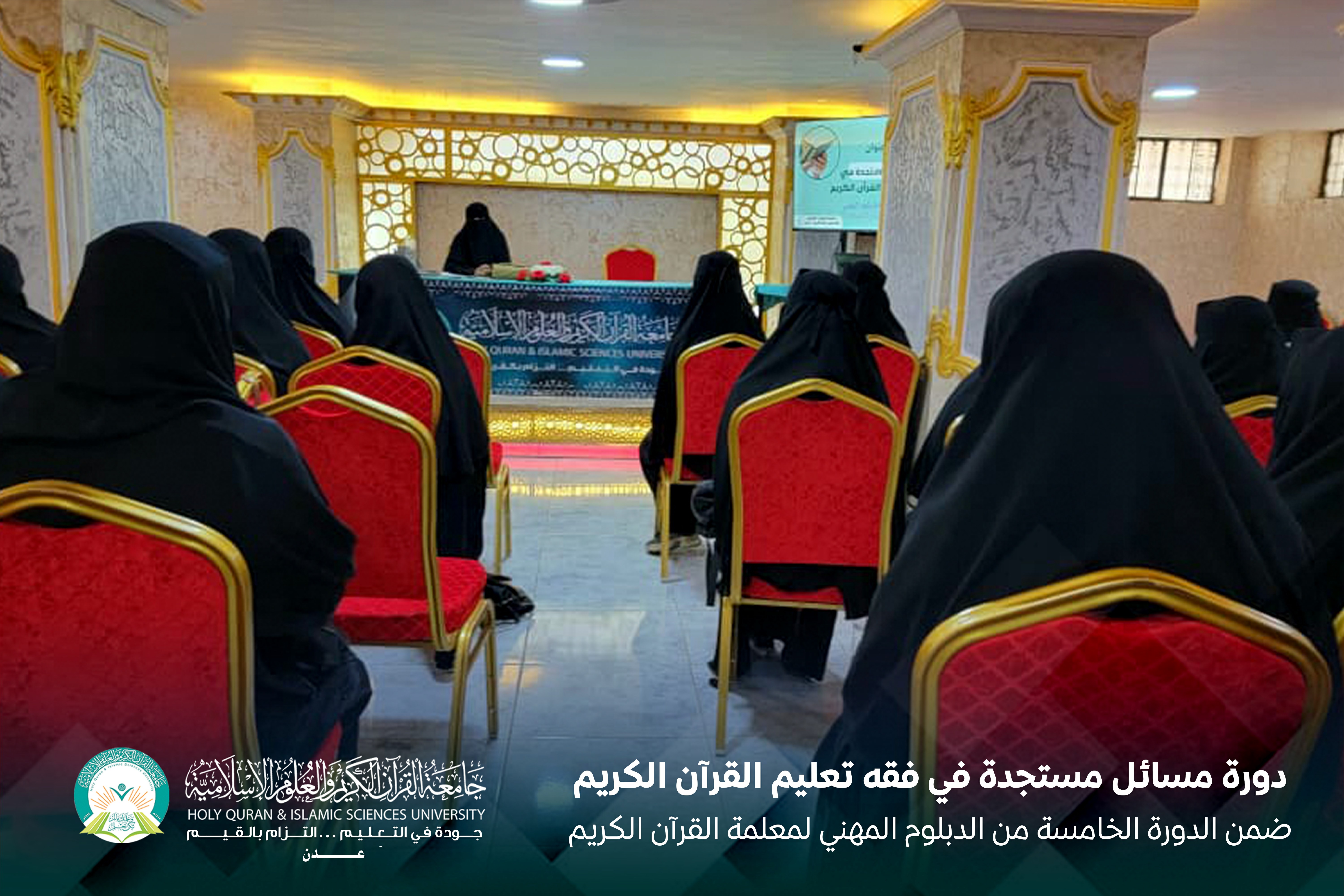 أقامت الكلية العليا للقرآن الكريم بالشراكة مع مركز الإقراء والإجازة بالسند بجامعة القرآن الكريم والعلوم الإسلامية – عدن، الدورة الخامسة من الدبلوم المهني لمعلمة القرآن الكريم، تحت عنوان: «مسائل مستجدة في فقه تعليم القرآن الكريم».