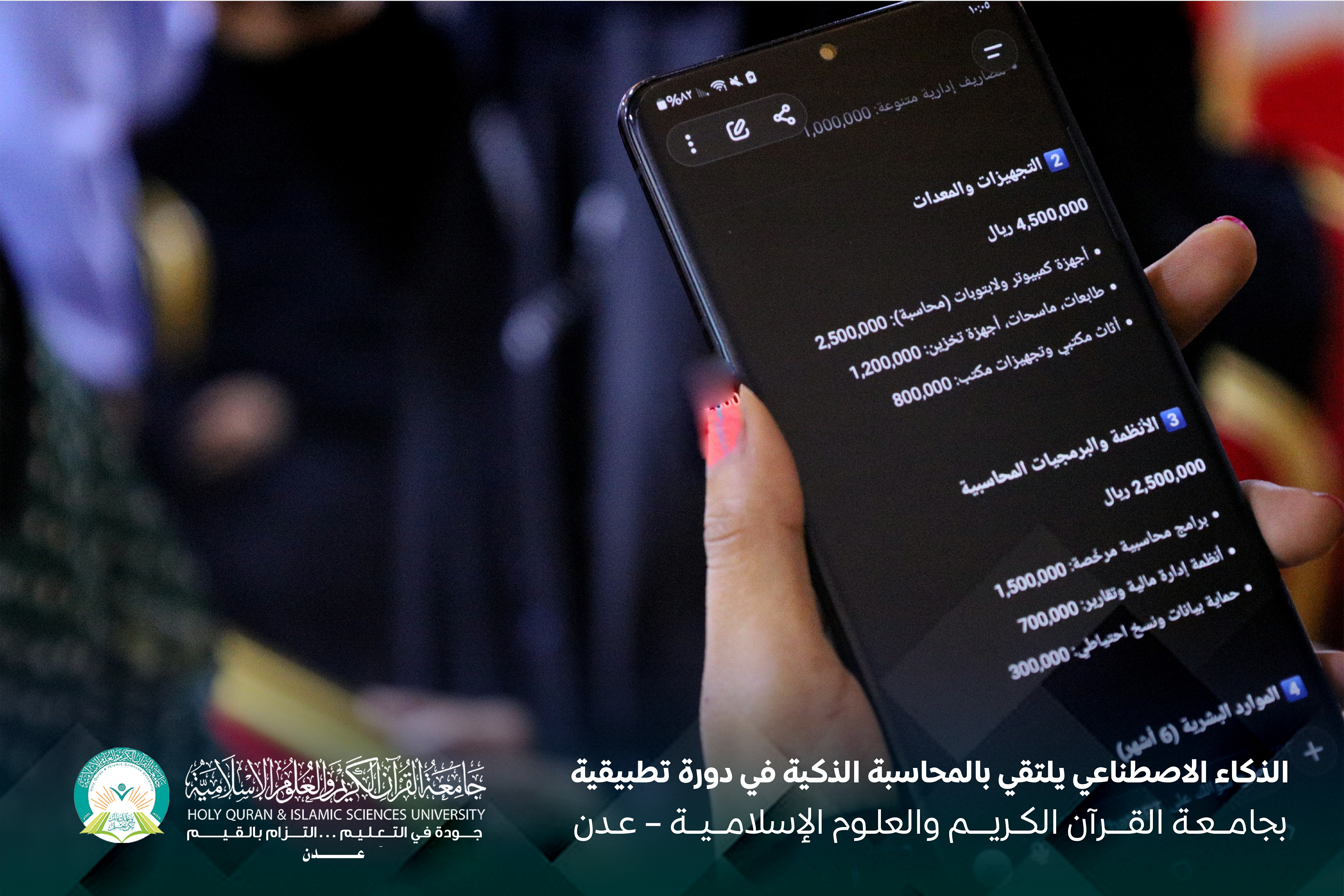 الرئيسية > الأخبار > الذكاء الاصطناعي يلتقي بالمحاسبة الذكية في دورة تطبيقية بجامعة القرآن الكريم والعلوم الإسلامية – عدن