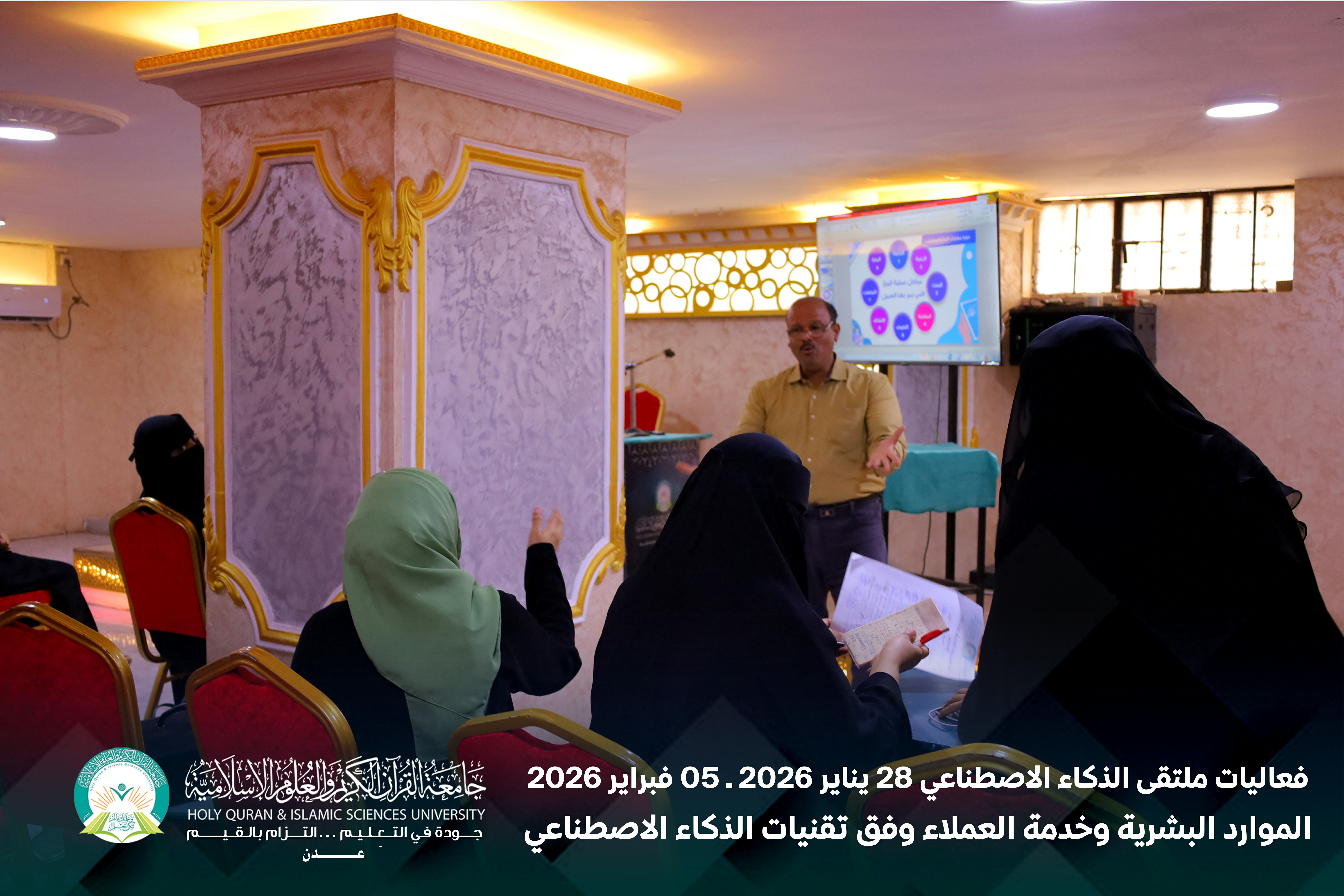 في إطار مواكبتها للتطورات المتسارعة في مجالات التحول الرقمي وتعزيز الكفاءات المؤسسية، أقامت جامعة القرآن الكريم والعلوم الإسلامية، ضمن فعاليات ملتقى الذكاء الاصطناعي، دورة تدريبية متخصصة بعنوان «الموارد البشرية وخدمة العملاء وفق تقنيات الذكاء الاصطناعي».