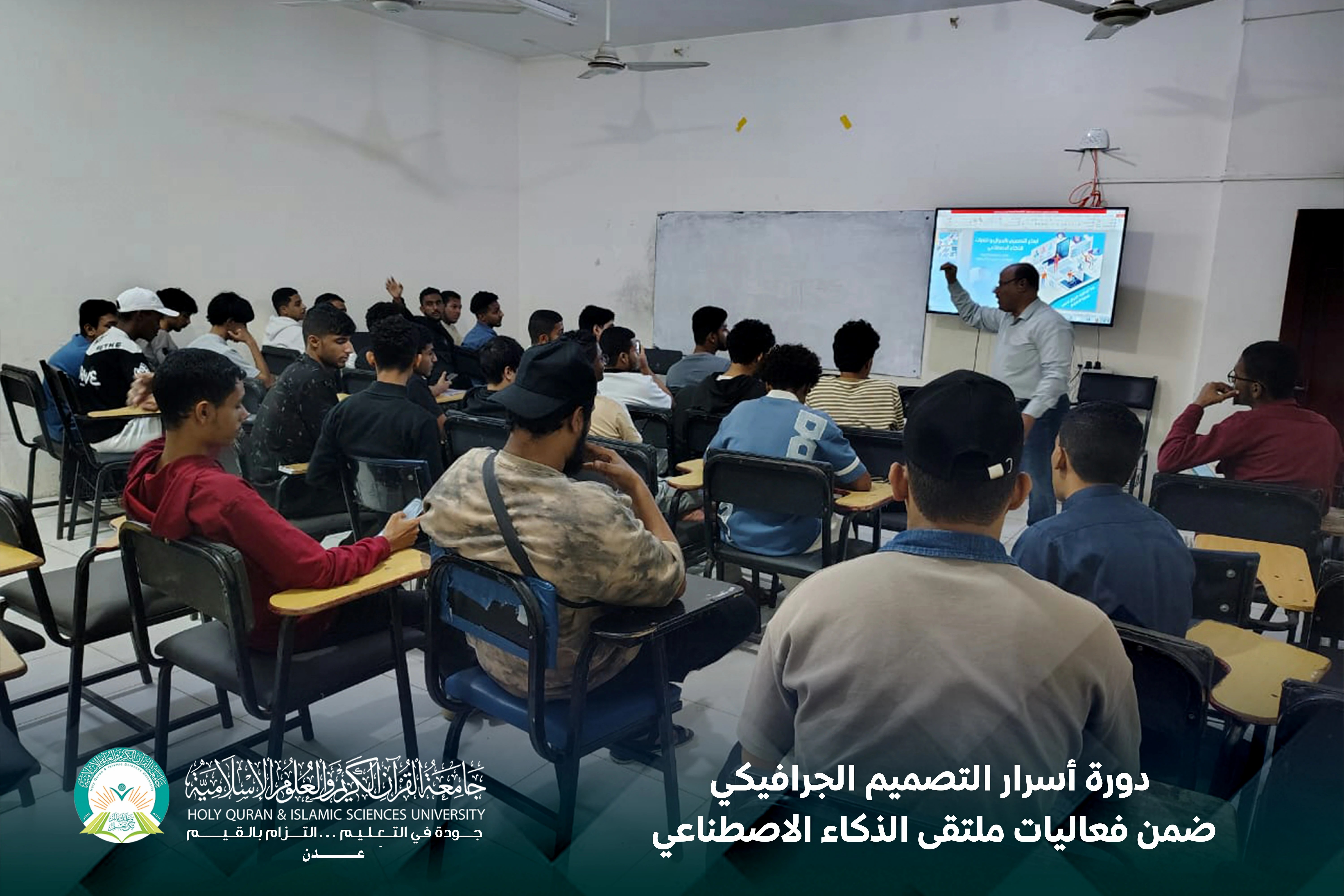 تواصل جامعة القرآن الكريم والعلوم الإسلامية، ضمن فعاليات ملتقى الذكاء الاصطناعي، تنفيذ برامجها التدريبية الهادفة إلى تنمية مهارات طلابها، حيث أقامت دورة تدريبية متخصصة بعنوان " أسرار التصميم الجرافيكي وفق نماذج الذكاء الاصطناعي "، استهدفت طلاب الجامعة من مختلف التخصصات.