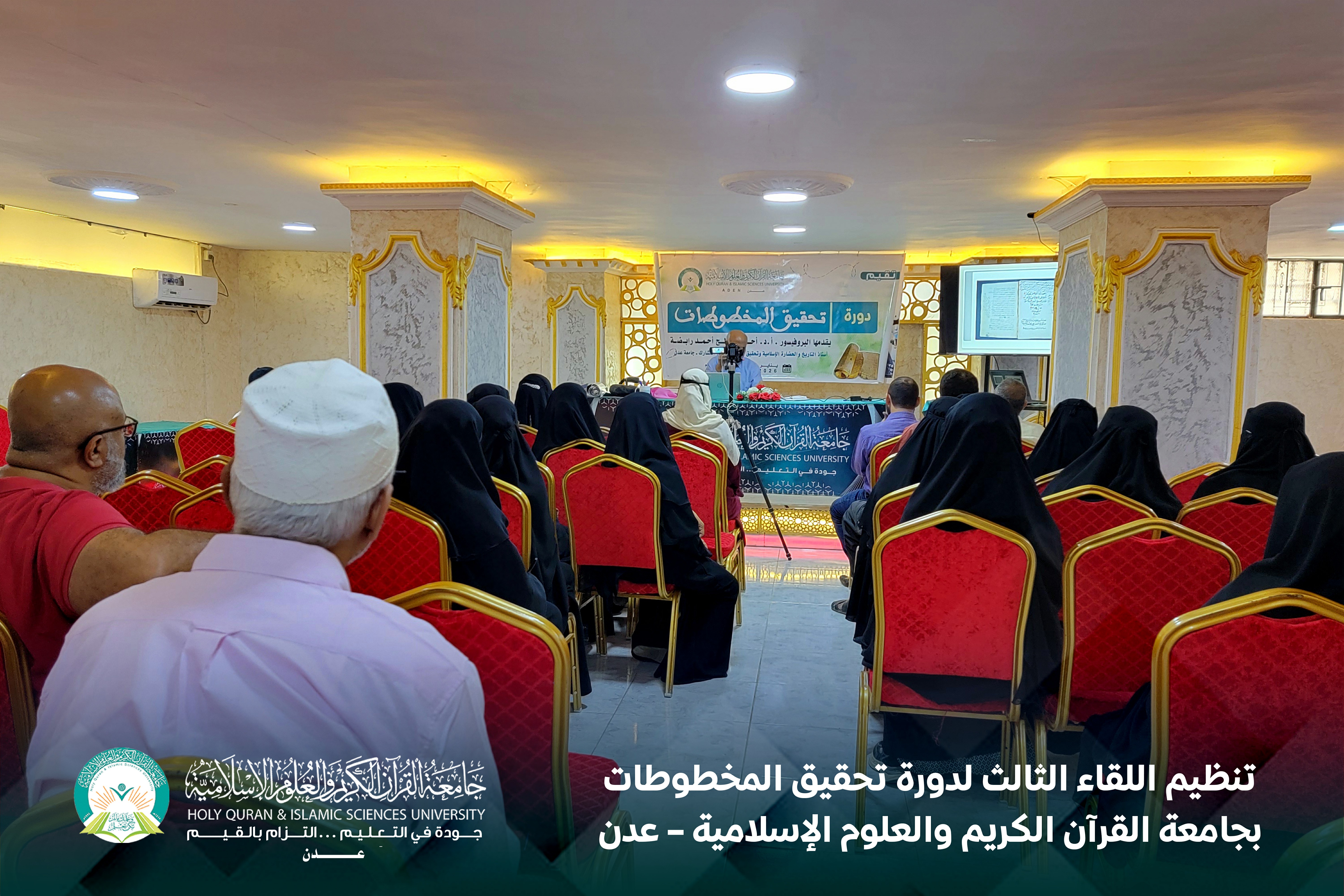 نظّمت جامعة القرآن الكريم والعلوم الإسلامية – عدن، اللقاء الثالث في دورة تحقيق المخطوطات، في إطار اهتمامها بتعزيز البحث العلمي وصقل مهارات الباحثين والطلاب في مجال تحقيق التراث الإسلامي.