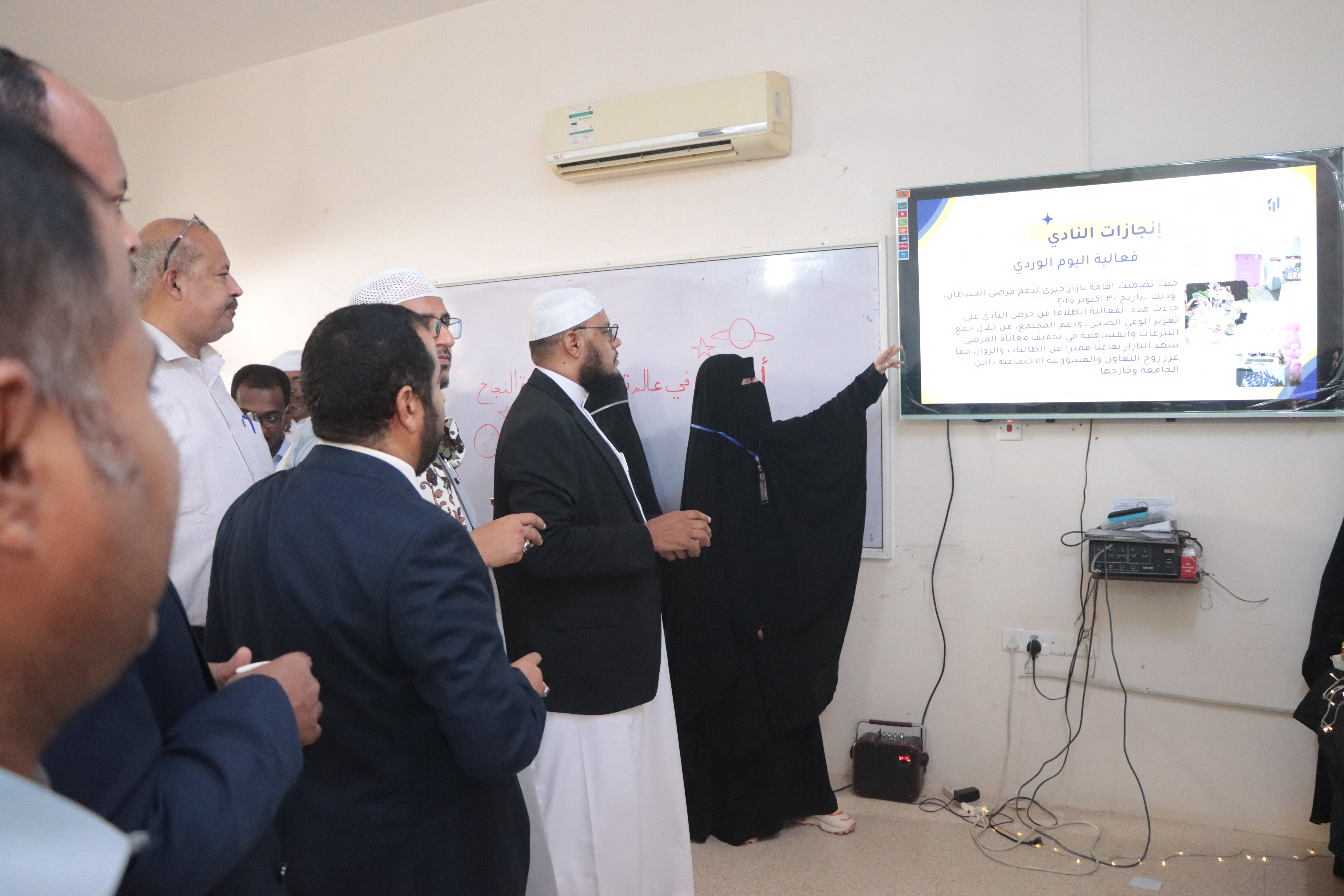 حضر الفعالية الأستاذ الدكتور عبدالله أحمد بن عثمان نائب رئيس الجامعة للشؤون الأكاديمية والدراسات العليا، والأمين العام للجامعة المهندس شوقي بامفروش، و الدكتور أحمد باطاهر نائب المدير للشؤون الاكاديمية و الاستاذ سامي مسلم نائب المدير للشؤون الادارية والمالية و رؤساء الاقسام العلمية والشخصيات الاجتماعية إلى جانب القيادات الأكاديمية والإدارية، والكادر الوظيفي،والعديد من الزوار وجمع من الطالبات، في أجواء أكاديمية عكست حيوية الجامعة ودورها التعليمي والمجتمعي.