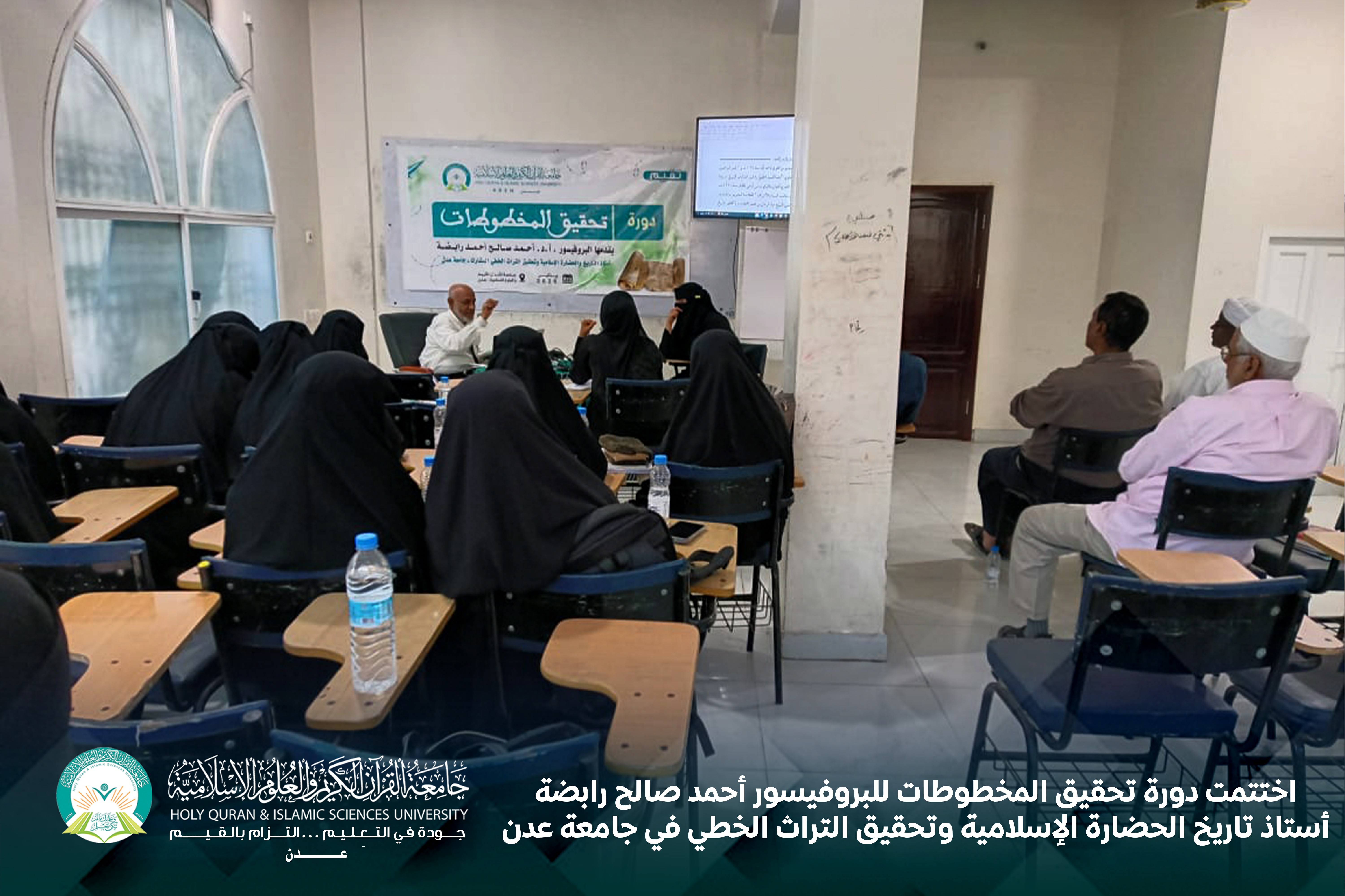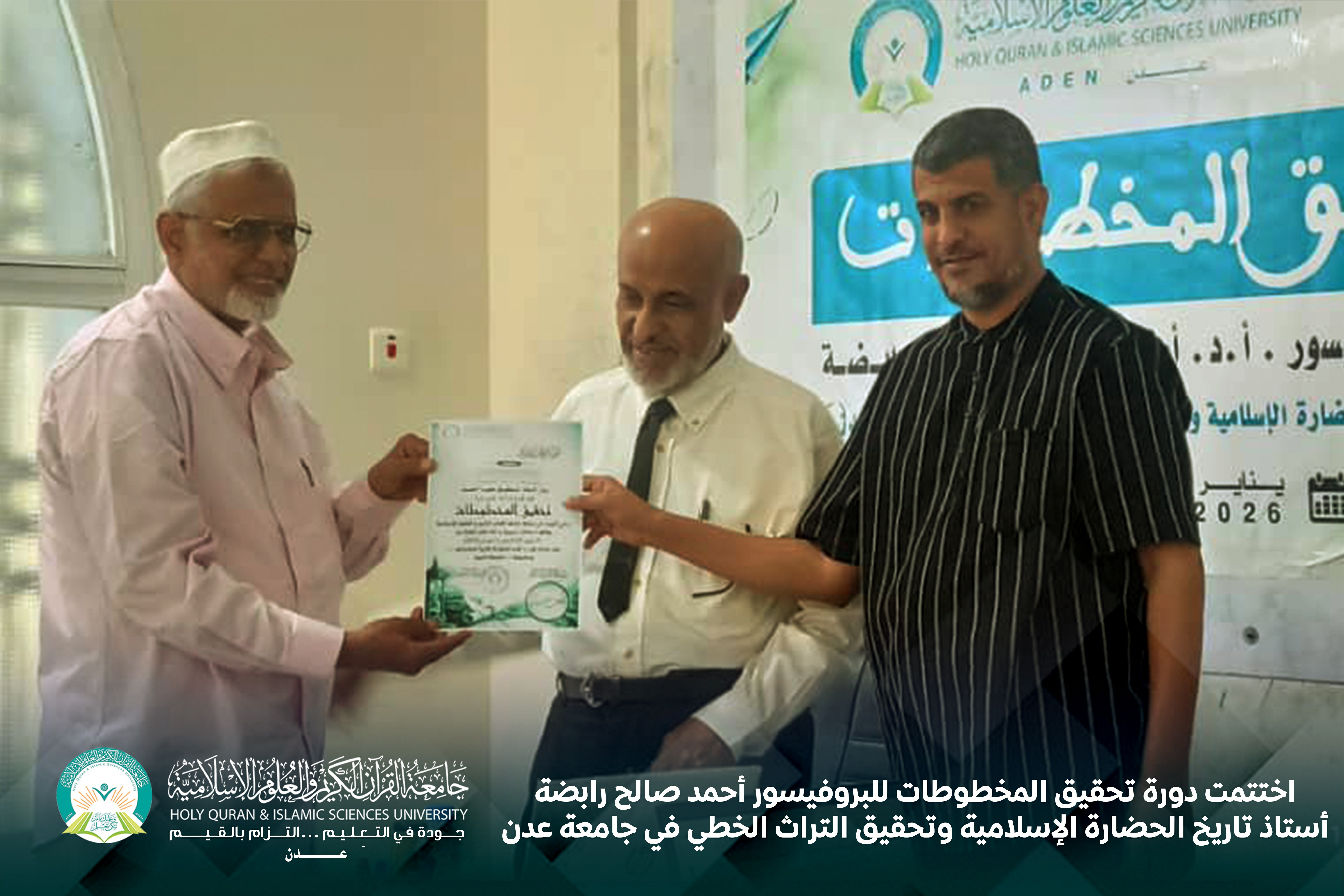 اختتمت جامعة القرآن الكريم والعلوم الإسلامية – عدن فعاليات دورة تحقيق المخطوطات، التي استمرت على مدى أربعة أيام، ضمن برامجها العلمية الهادفة إلى تأصيل منهجية البحث العلمي وخدمة التراث الإسلامي المخطوط.