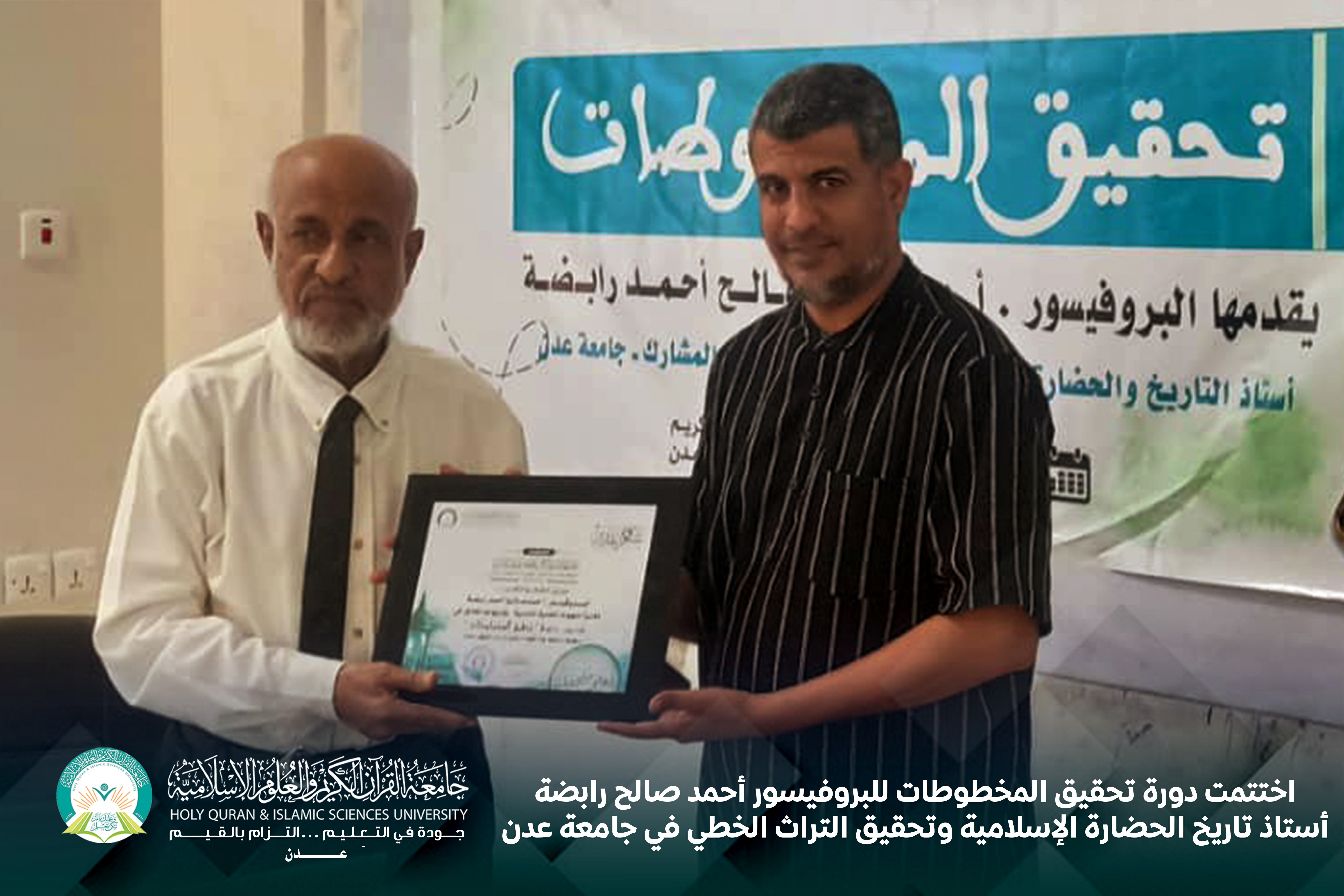 اختتام دورة تحقيق المخطوطات بجامعة القرآن الكريم والعلوم الإسلامية – عدن