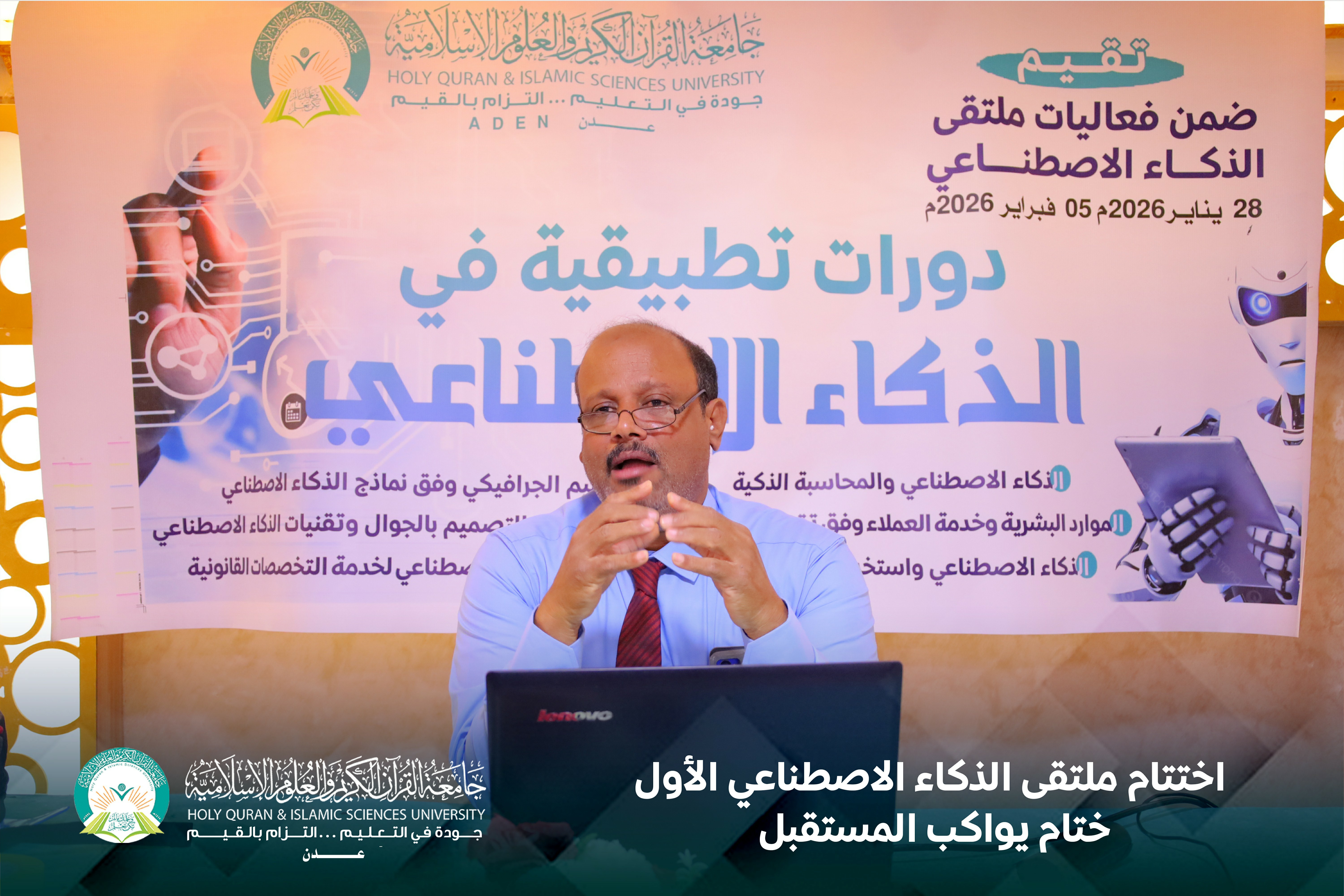 وسط تفاعل لافت ومشاركة واسعة، اختتمت جامعة القرآن الكريم والعلوم الإسلامية عدن ، فعاليات ملتقى الذكاء الاصطناعي الأول، بإقامة دورة تدريبية متخصصة بعنوان " تطبيقات الذكاء الاصطناعي في العمل الإداري وإعداد الخطط والتقارير " ، استهدفت موظفي الجامعة من مختلف الإدارات. وجاءت هذه الدورة لتؤكد توجه الجامعة نحو تحديث بيئة العمل الإداري، حيث ركزت على تمكين الكوادر الإدارية من استخدام أدوات وتقنيات الذكاء الاصطناعي في تطوير الأداء، وتحسين أساليب إعداد الخطط والتقارير، بما يسهم في تعزيز الجودة المؤسسية ودعم مسار التحول الرقمي. وتناولت الدورة محاور تطبيقية حديثة، استعرضت مفاهيم الذكاء الاصطناعي في الإدارة المعاصرة، وأبرز الأدوات الذكية في تنظيم العمل وتحليل البيانات وإعداد التقارير الاحترافية، إلى جانب نماذج عملية أسهمت في تبسيط الإجراءات ورفع مستوى الإنتاجية. وشهد ملتقى الذكاء الاصطناعي تنوعًا لافتًا في برامجه التدريبية، من خلال عدد من الدورات المتخصصة، و التي قدمها المدرب سامي بارفيد، خبير الذكاء الاصطناعي ومن أبرزها: