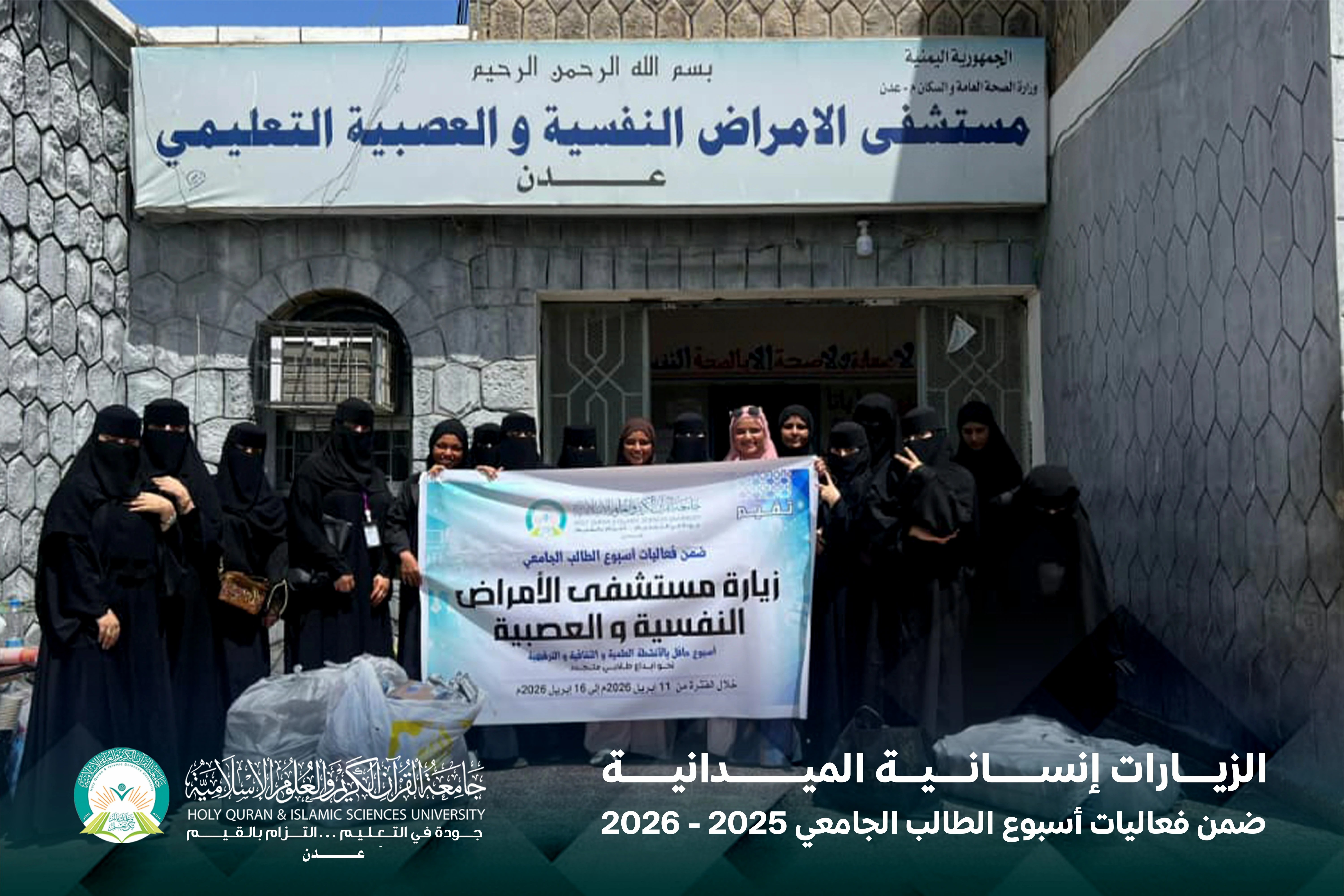 في إطار فعاليات أسبوع الطالب الجامعي، نظّمت جامعة القرآن الكريم والعلوم الإسلامية – عدن سلسلة من الزيارات الإنسانية بمشاركة فاعلة من الطلاب والطالبات، وذلك في إطار ترسيخ قيم التكافل الاجتماعي وتعزيز الدور المجتمعي للطالب الجامعي.
