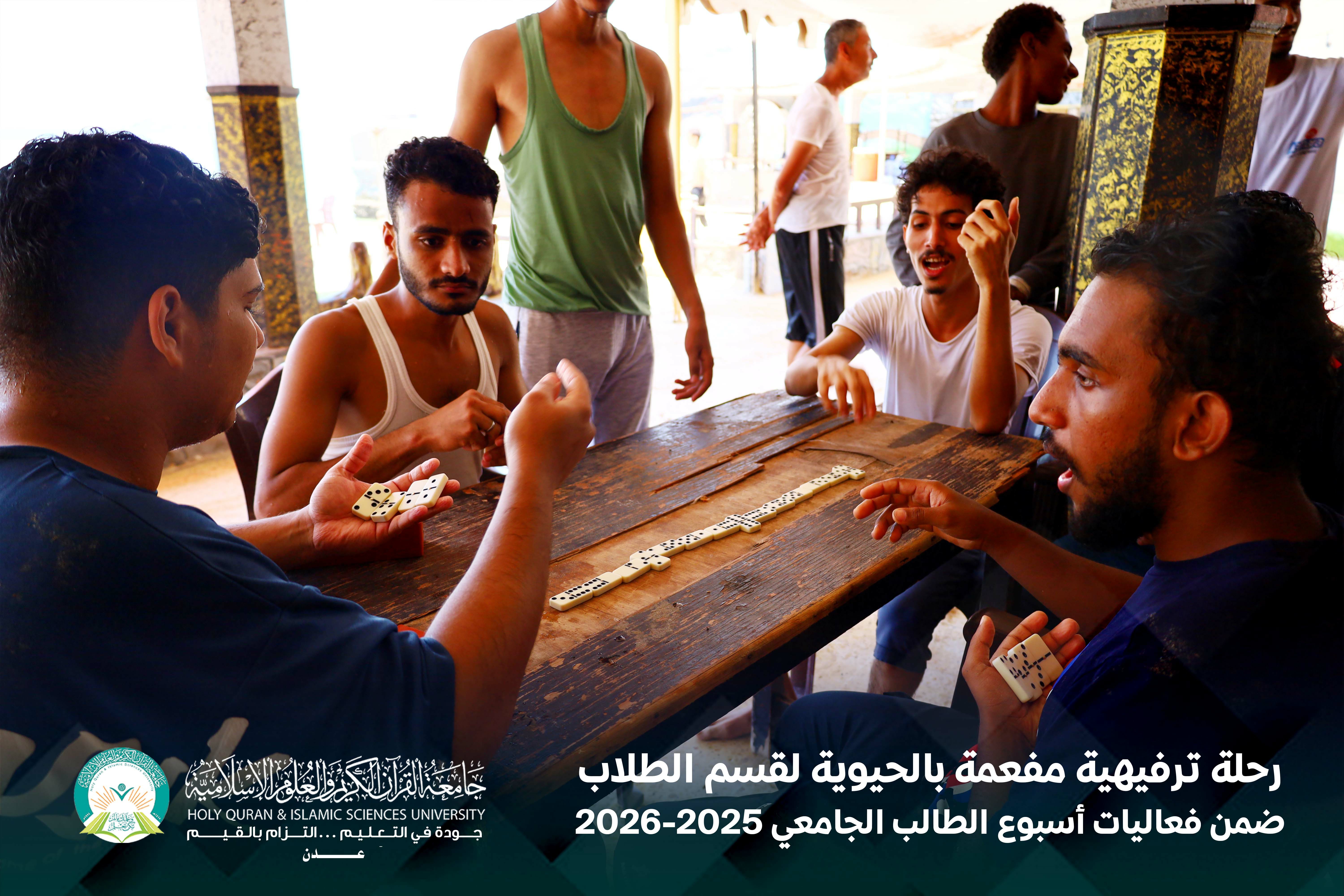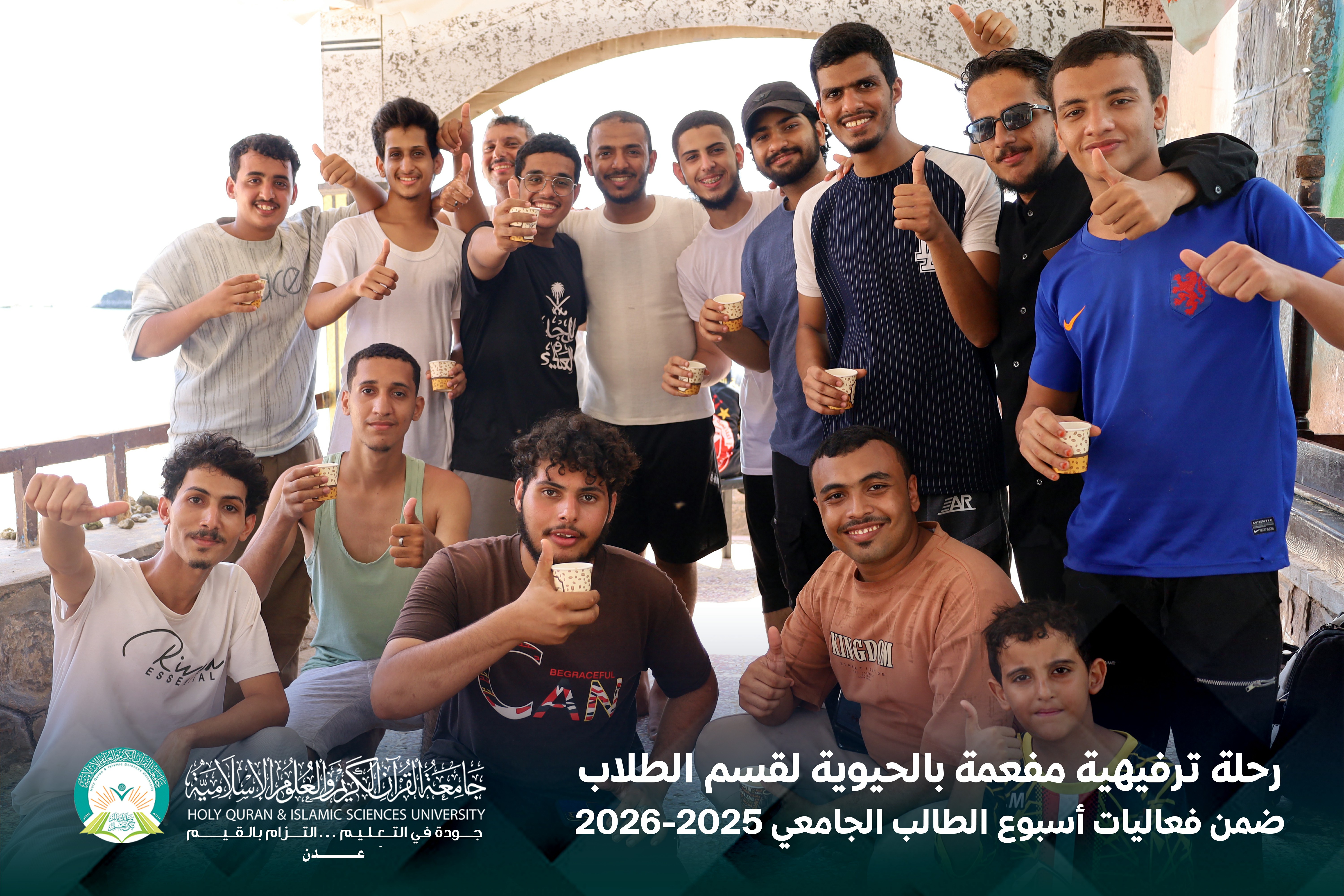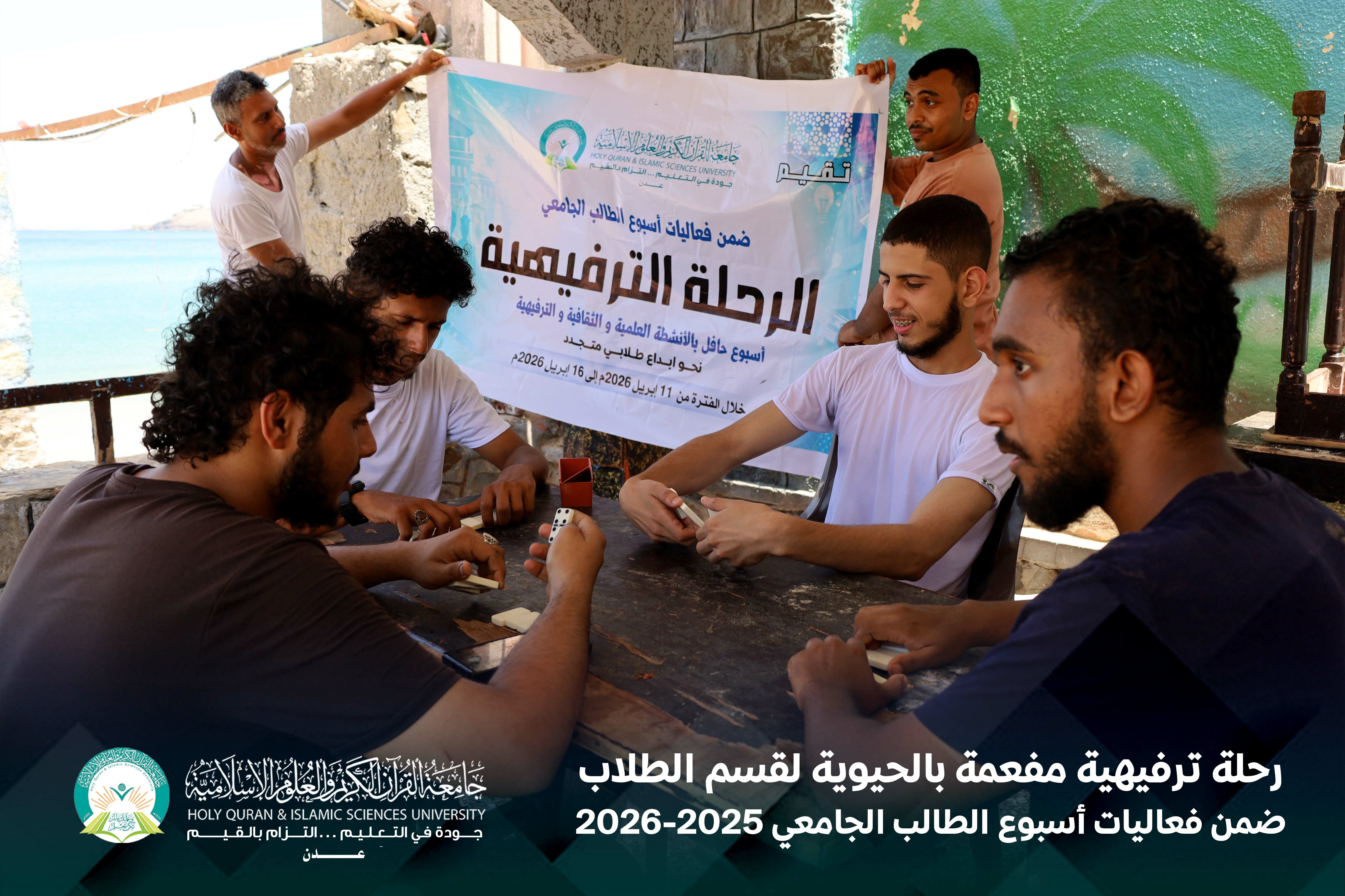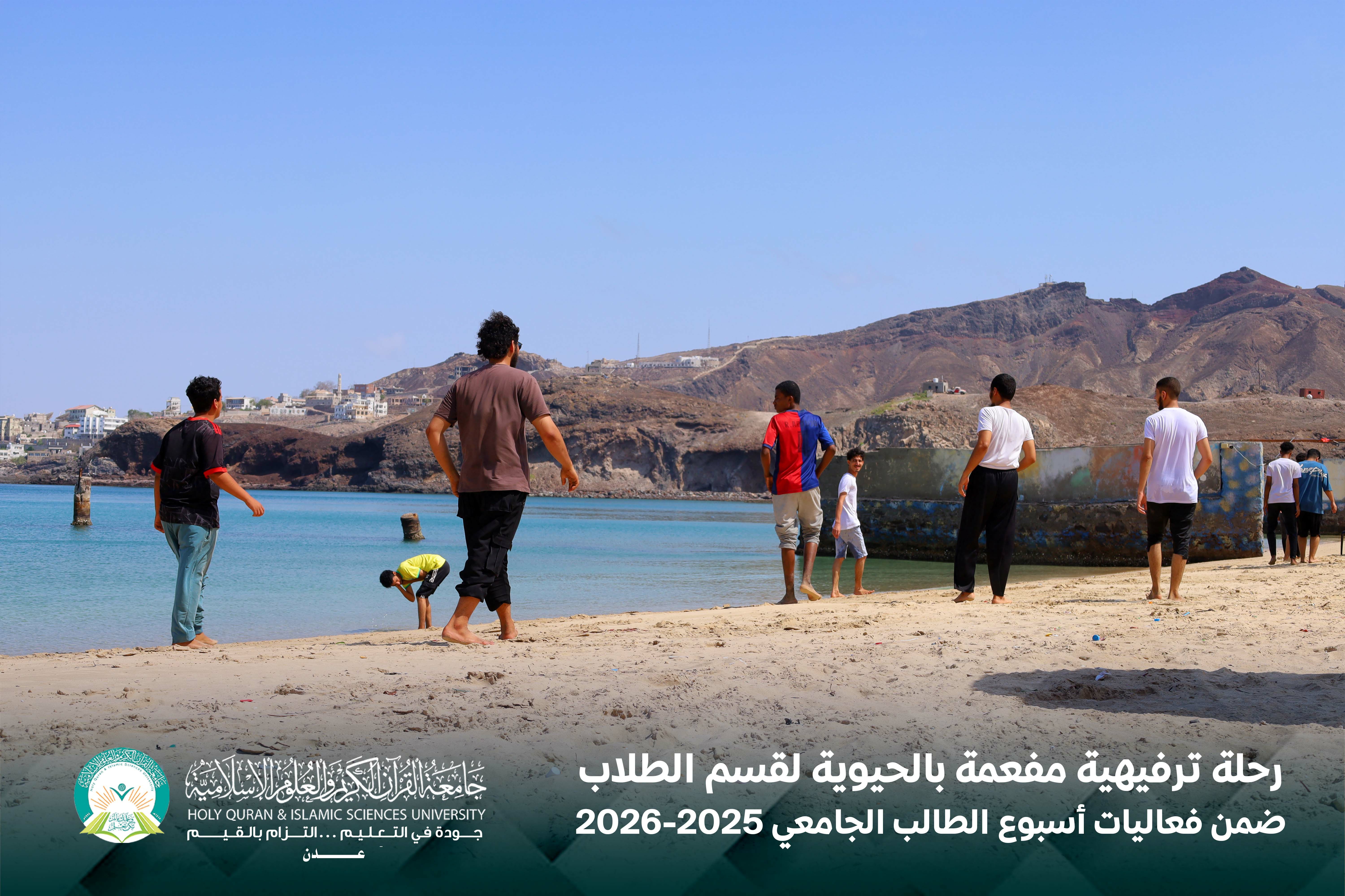 في لوحةٍ صباحيةٍ مفعمة بالحيوية، وتحت سماء يوم الخميس الموافق 16 أبريل 2026م، نظّمت جامعة القرآن الكريم والعلوم الإسلامية – عدن، بالشراكة مع المجلس الطلابي، رحلة ترفيهية لطلابها إلى منتجع الدبلوماسي، ضمن برنامج فعاليات أسبوع الطالب الجامعي.
