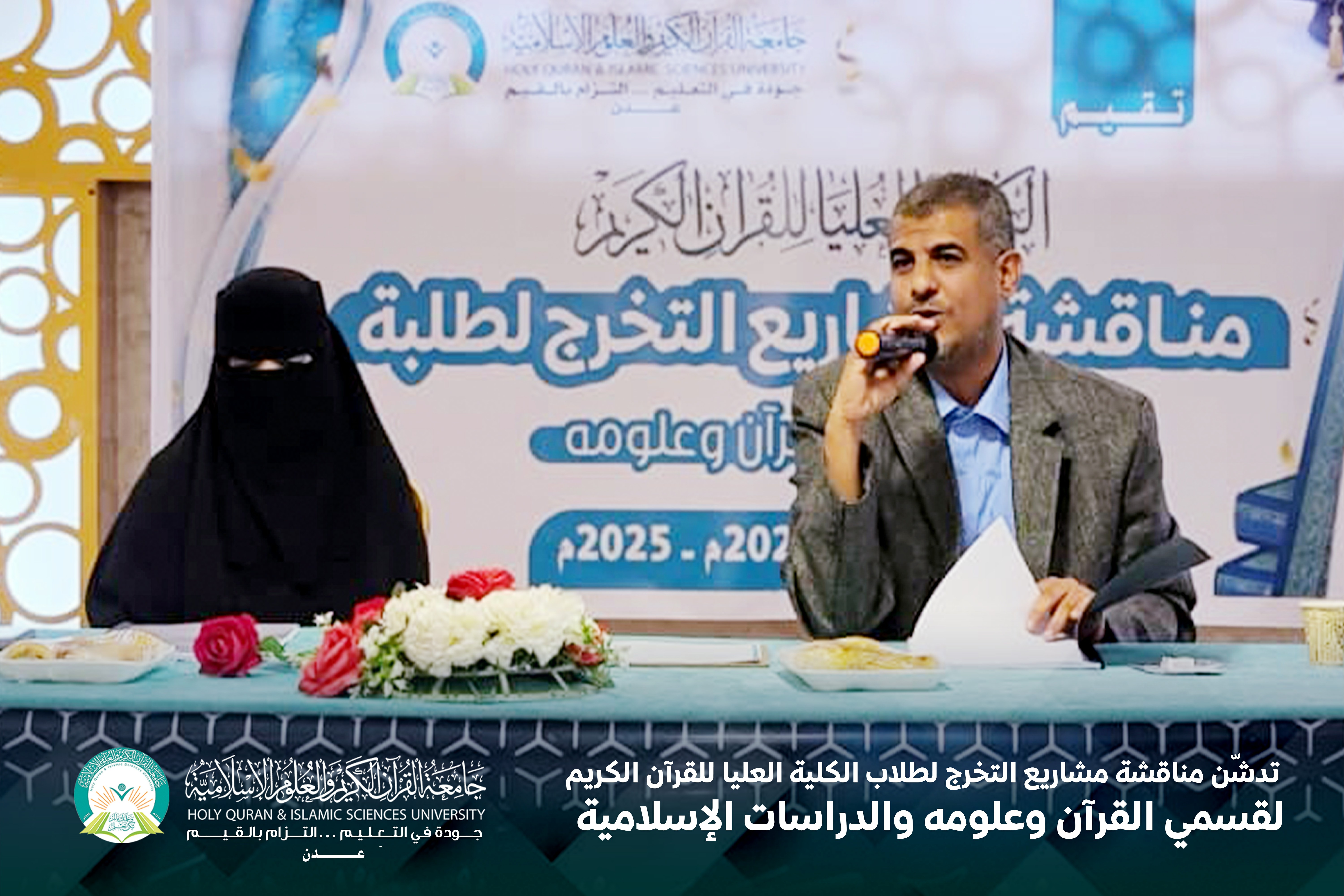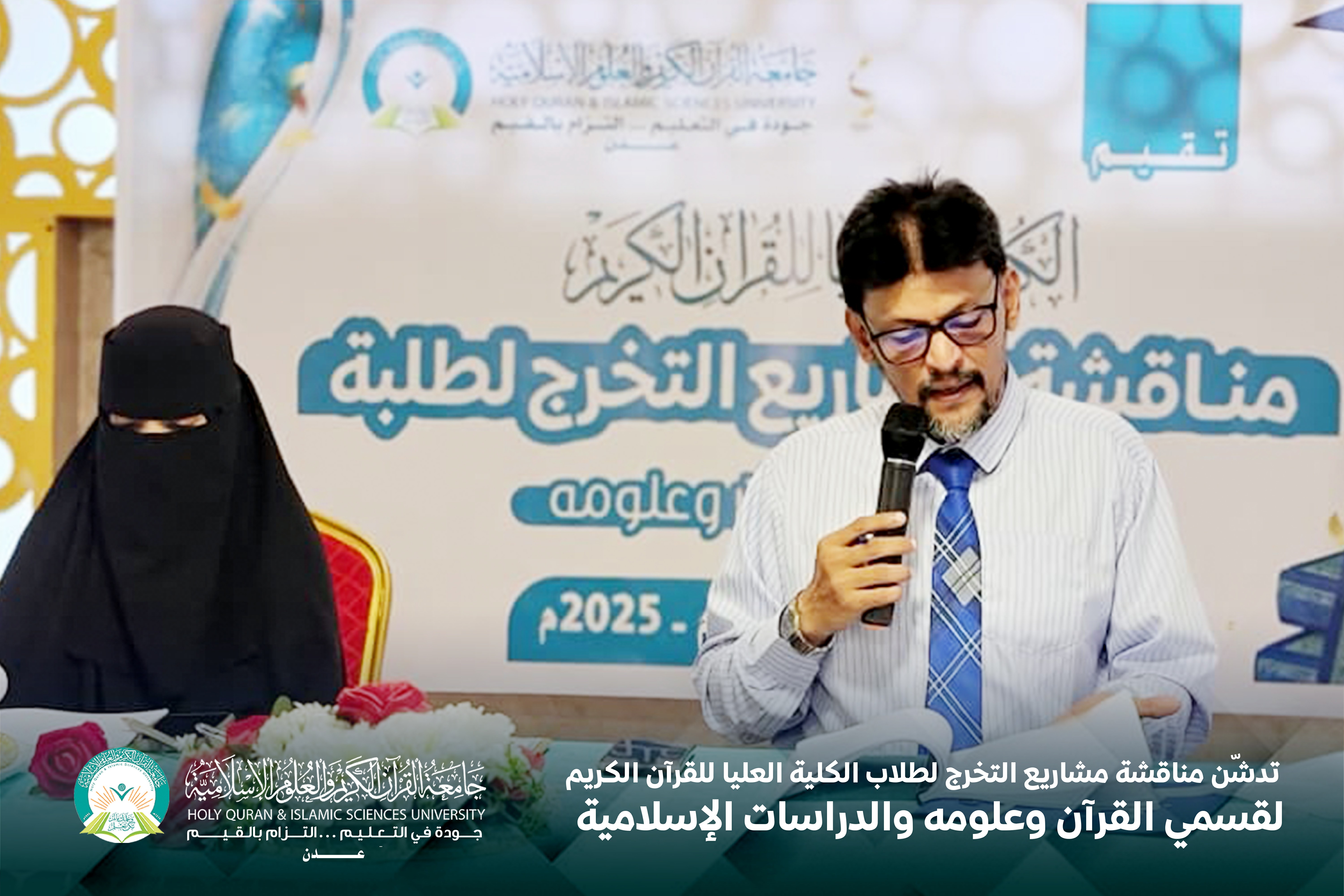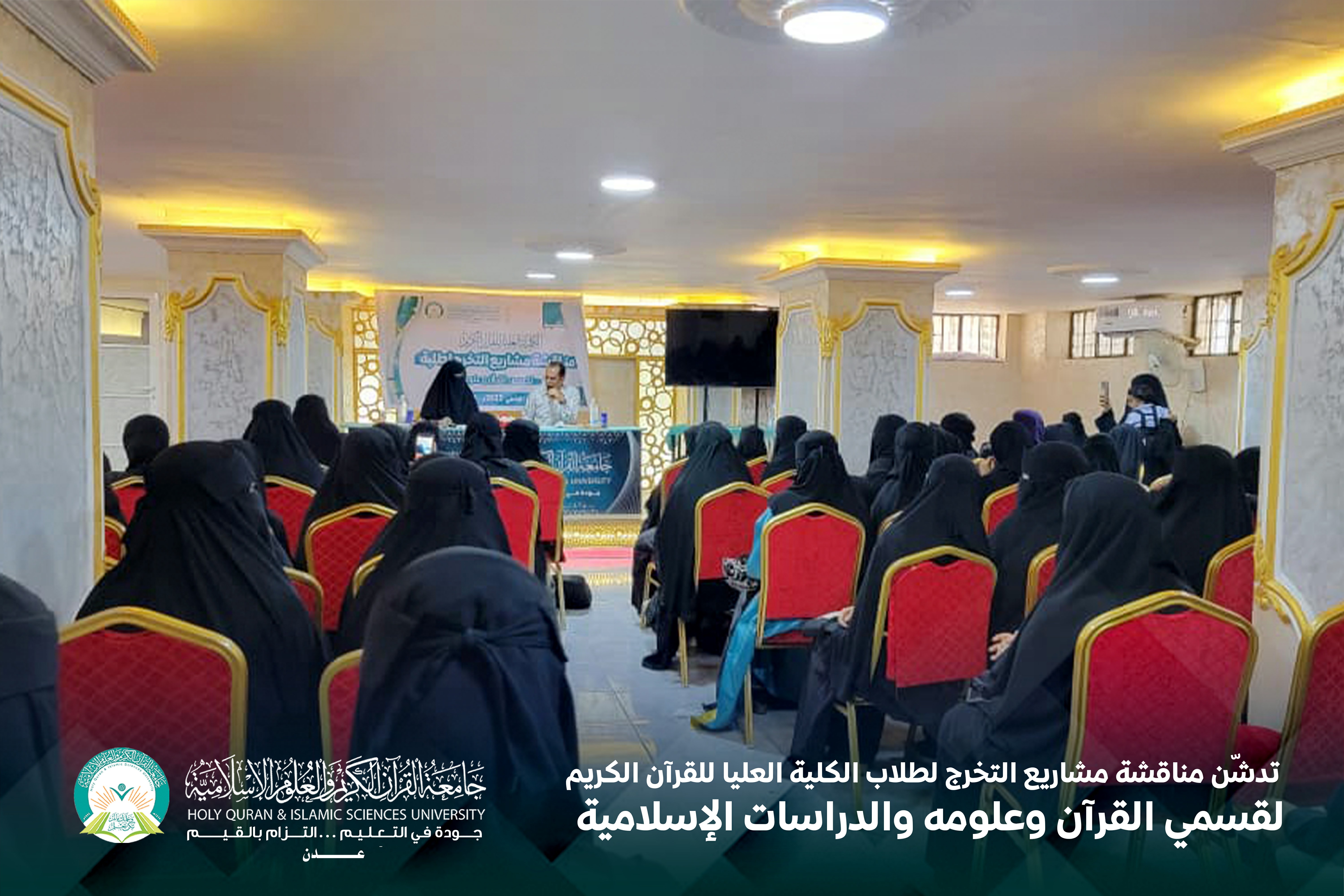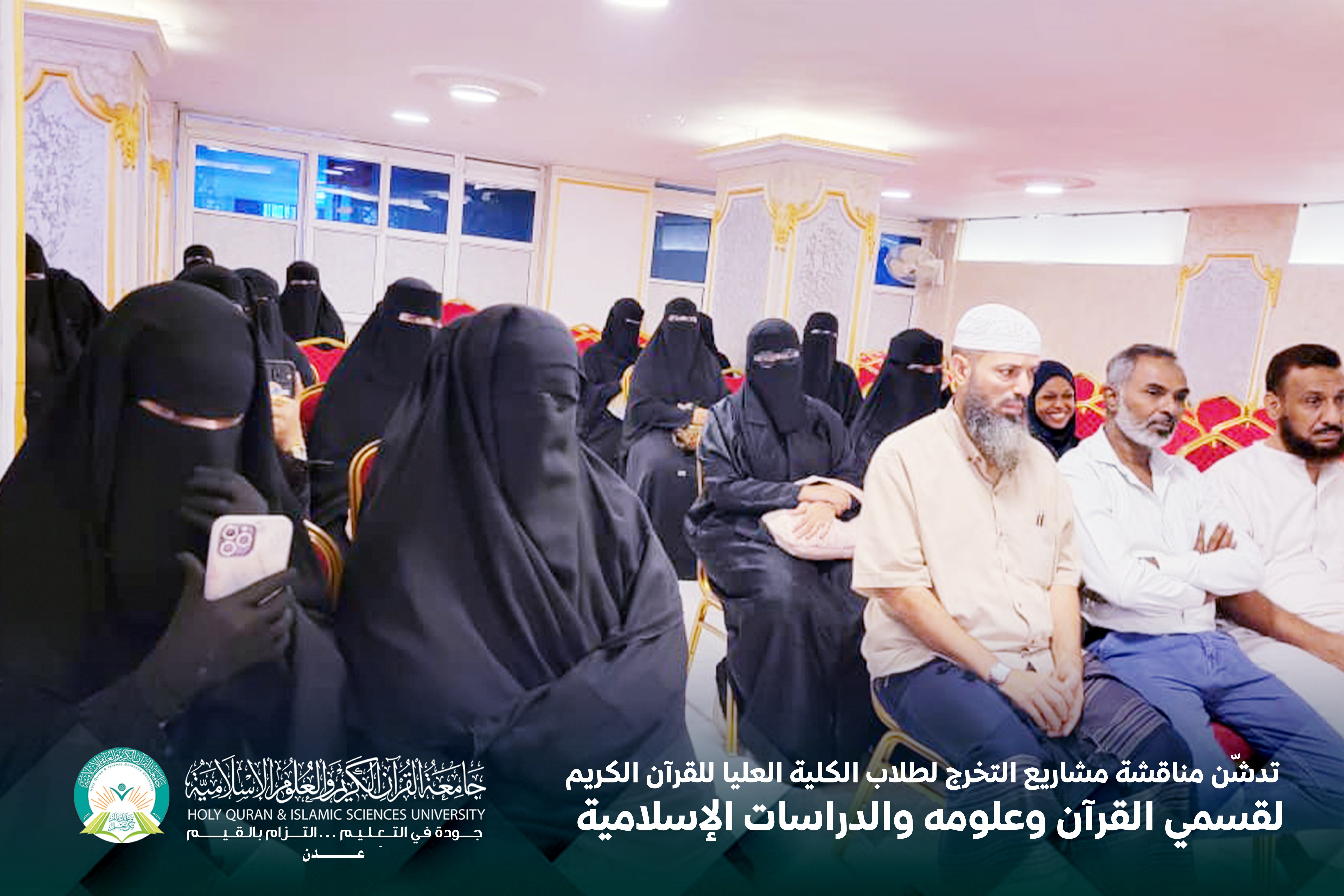 شهدت الكلية العليا للقرآن الكريم بجامعة القرآن الكريم والعلوم الإسلامية – عدن تدشين جلسات مناقشة مشاريع التخرج لطلبة قسمي القرآن وعلومه والدراسات الإسلامية للعام الجامعي 2025–2026م، في إطار أكاديمي متميز عكس جدية العملية التعليمية وعمق مخرجاتها، وبحضور نخبة من القيادات الأكاديمية وأعضاء هيئة التدريس.